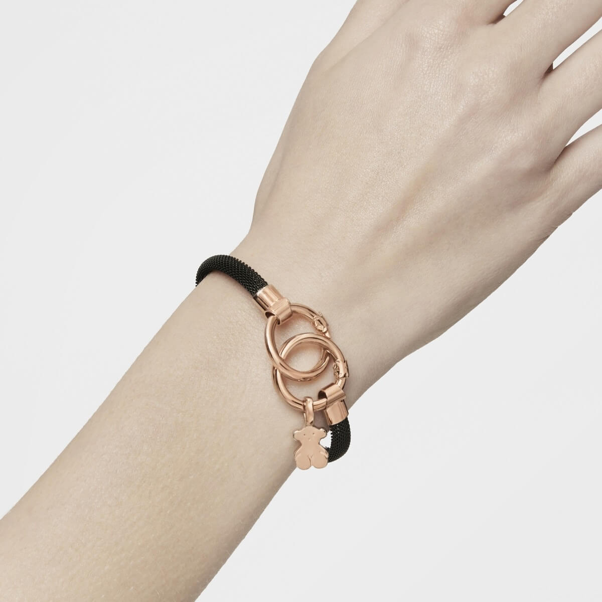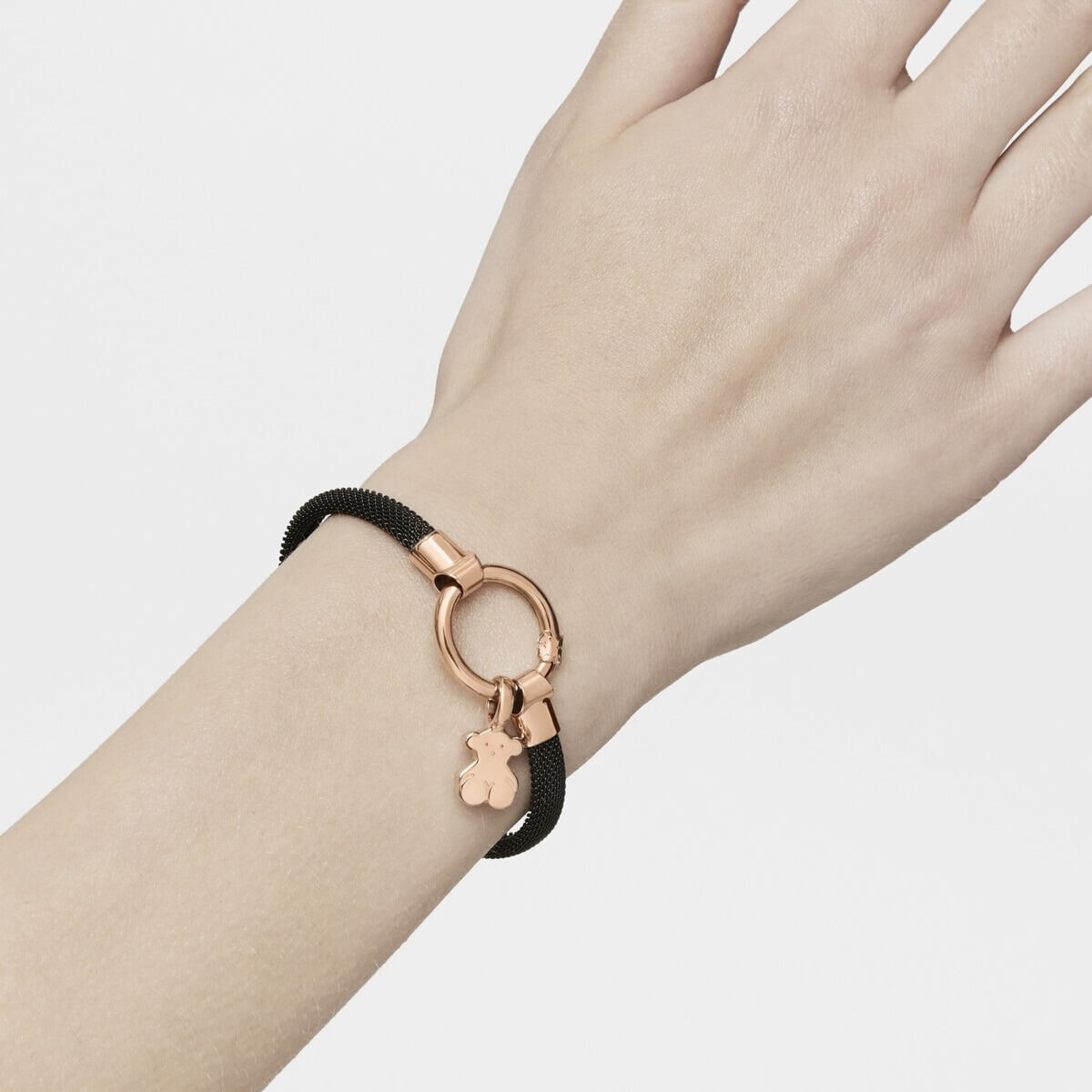 Уникальная, единственная в своем роде и бесспорно ваша. Это лучший способ описать образ, который вы получите с этим браслетом. Откройте кольцо и добавьте несколько подвесок TOUS. Чистая магия! Средний браслет TOUS Hold из розового серебра с сетчатым браслетом из черной IP стали. Персонализируйте его с помощью подвесок, маленьких украшений или колец.