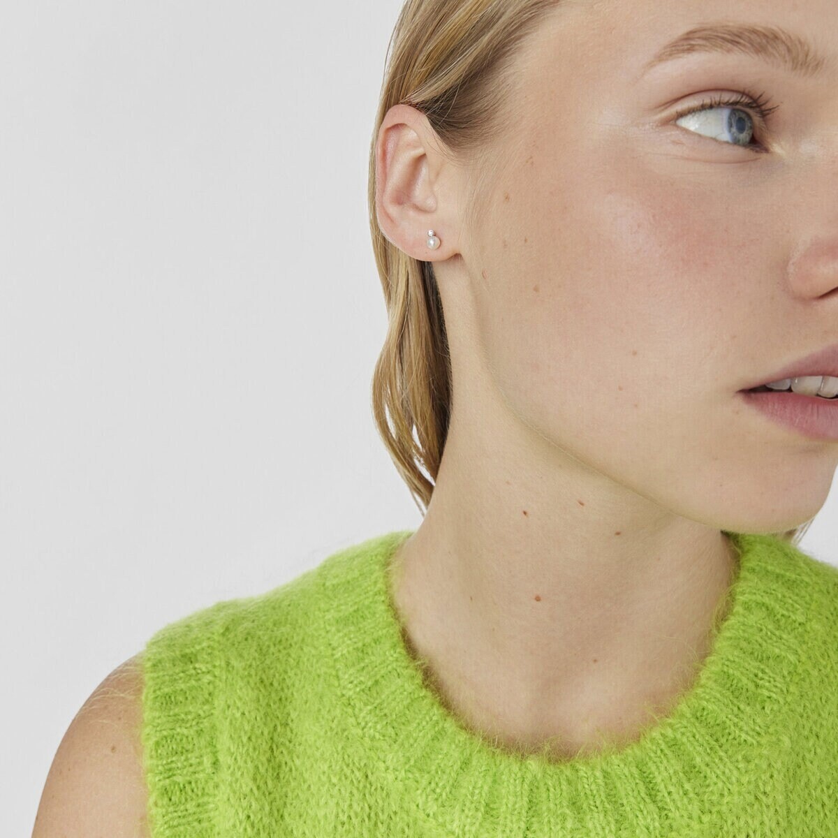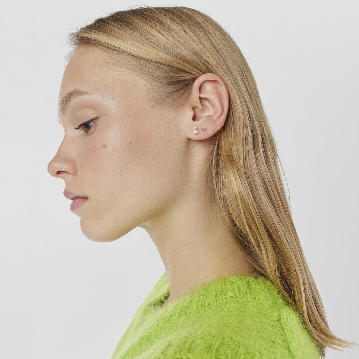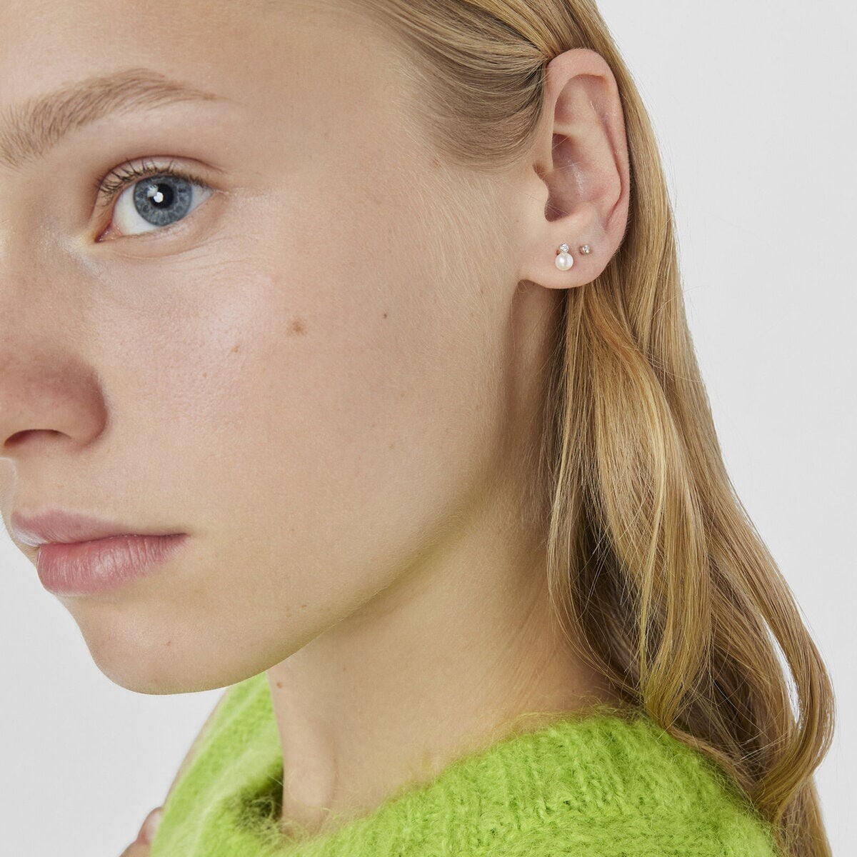 Серьги TOUS Basics из 18-каратного белого золота с бриллиантами 0,03 карата и жемчужинами 4 мм.