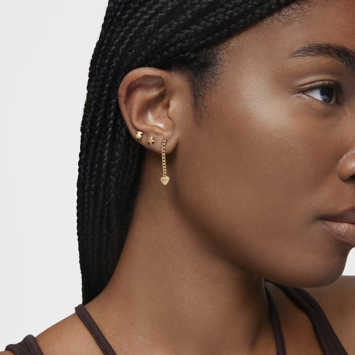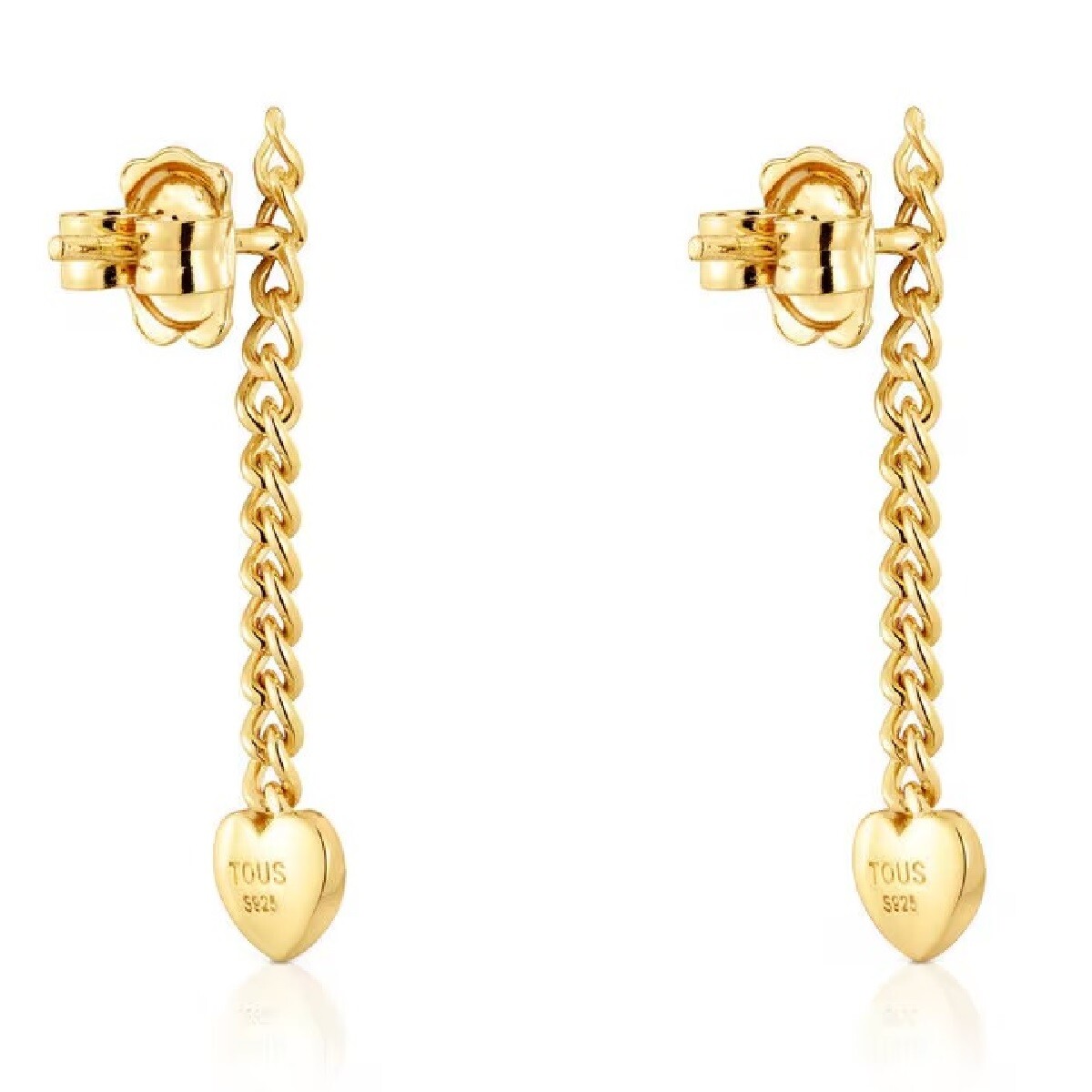 Длинное 18-каратное золочение поверх серебряных сережек в виде сердечек с ярким мотивом.