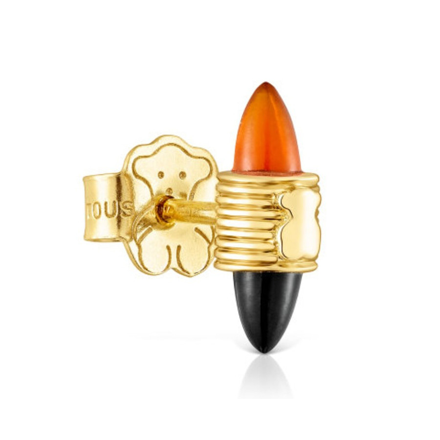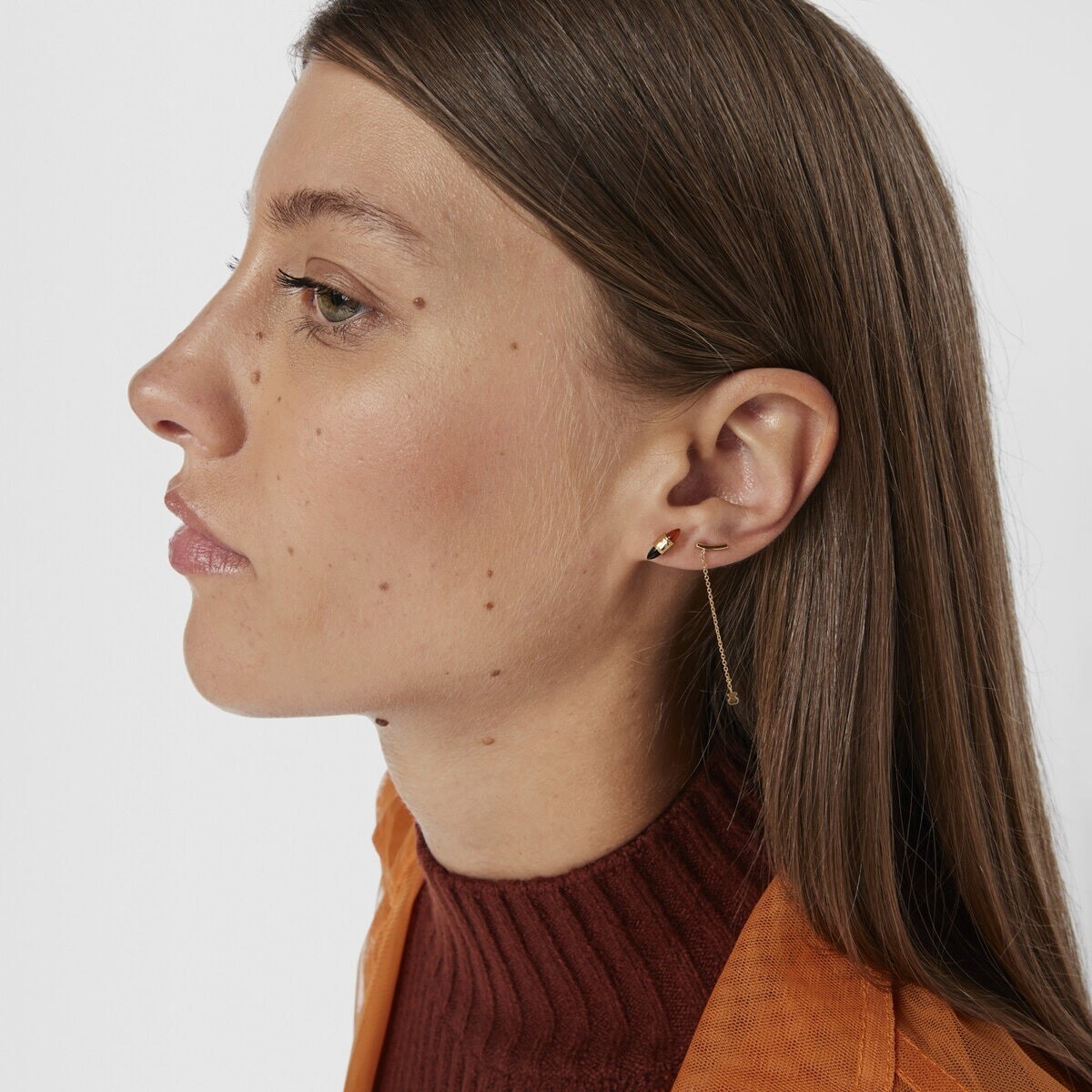 Цвет, настроение и масса индивидуальности в этой серьге из золота, сердолика и оникса из коллекции Lure. Минималистский и симметричный дизайн, воссоздающий элементы природного мира и рыбалки.