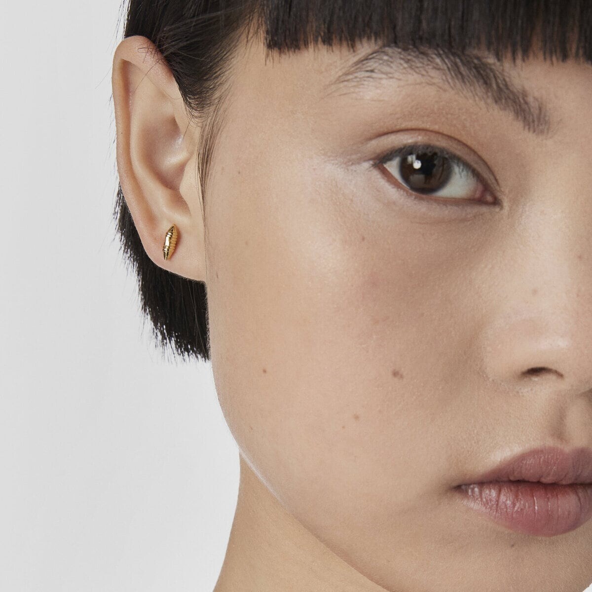 Настрой и много индивидуальности в этих золотых серьгах из коллекции Lure. Минималистичный и симметричный дизайн воссоздает элементы мира природы и рыбалки.