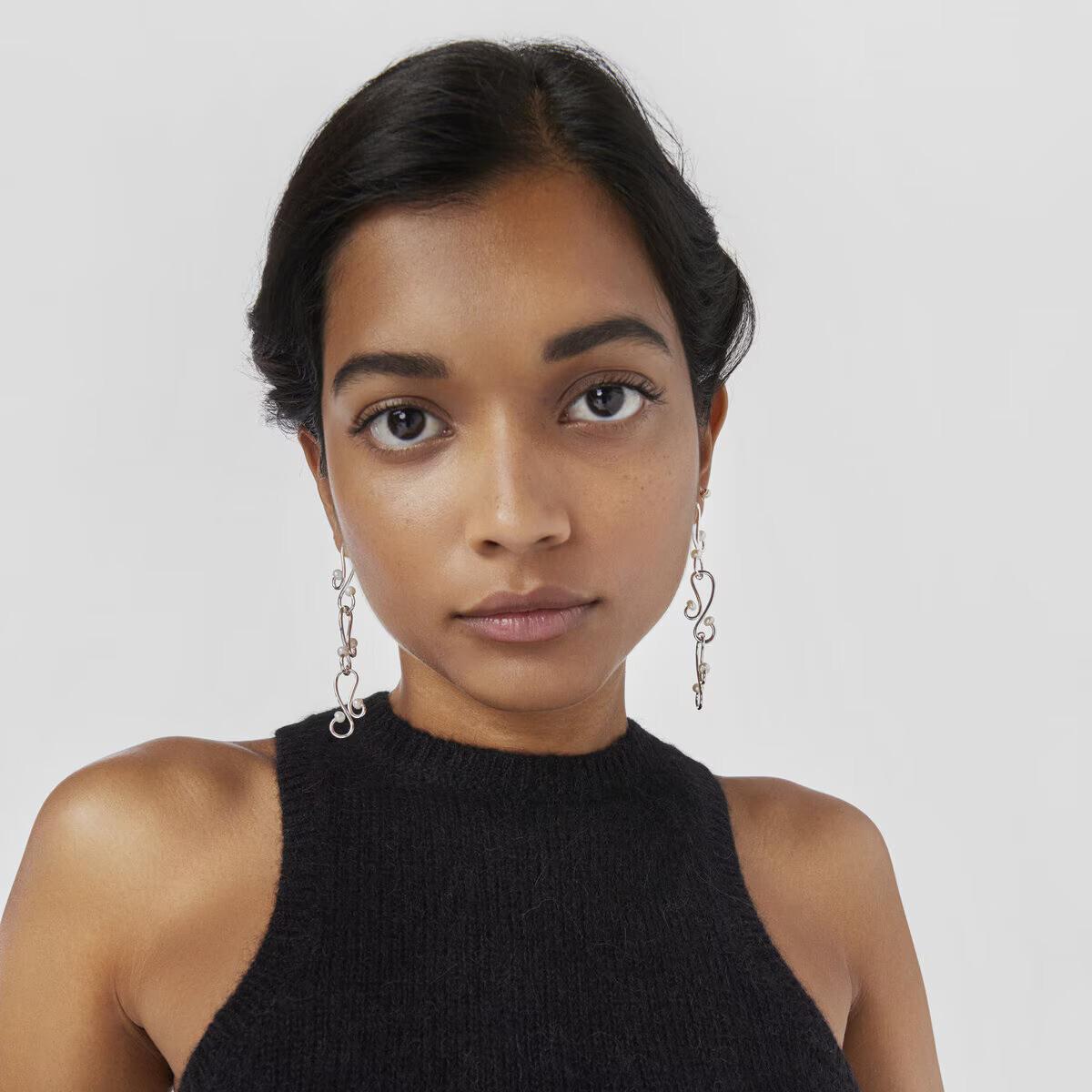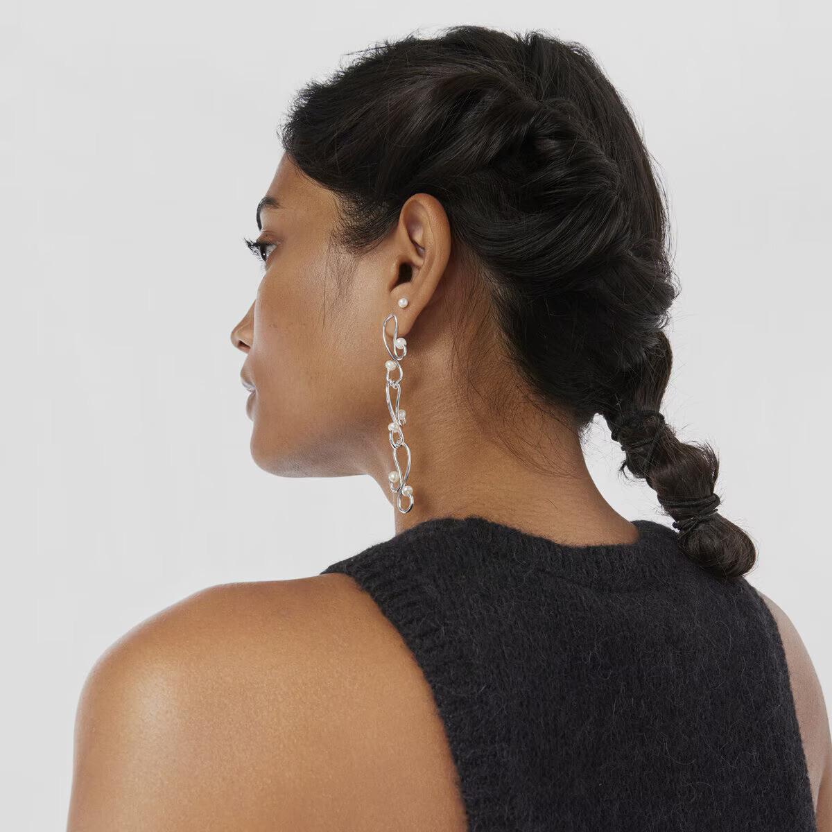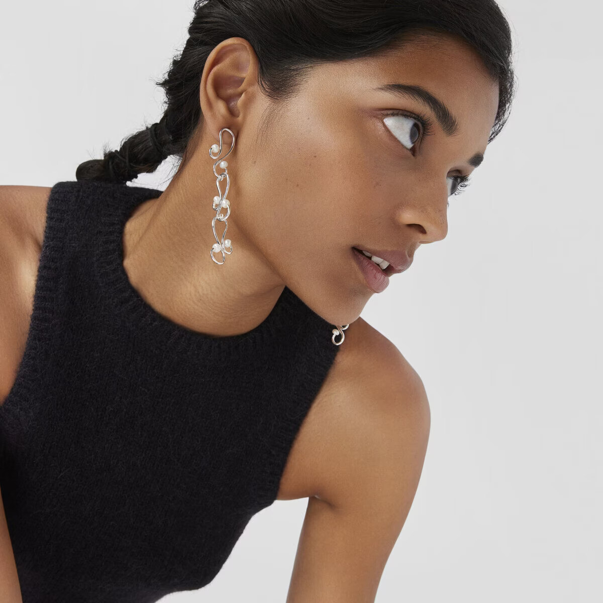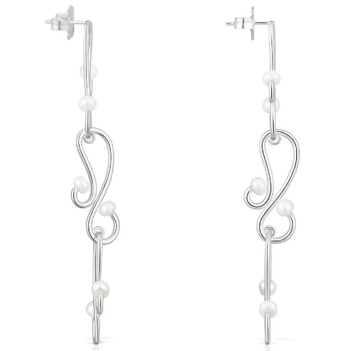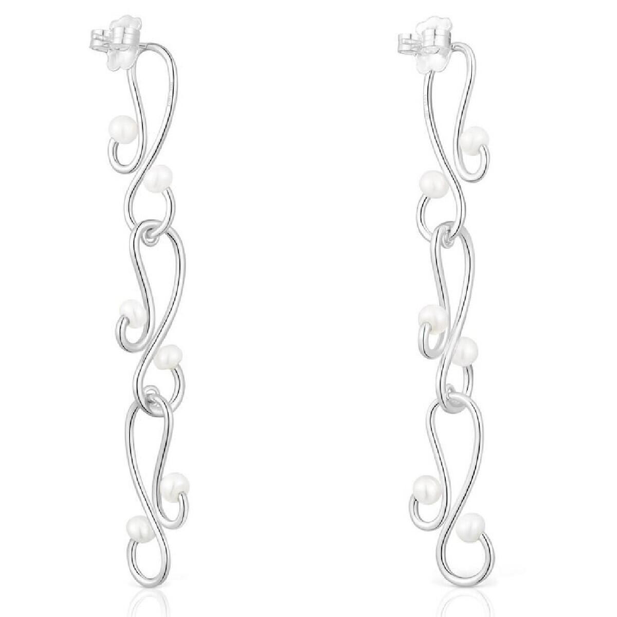 Длинные серьги TOUS Tsuri с переплетенными мотивами из чистого серебра с культивированным жемчугом на концах каждого мотива.