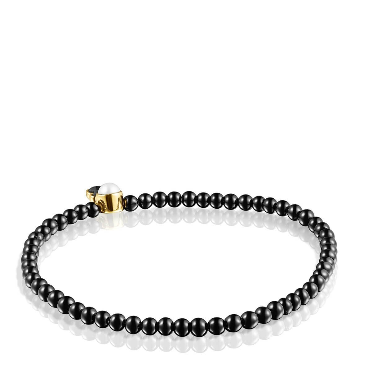 Наполните свою шкатулку для украшений цветами и драгоценными камнями из коллекции Glory, и они будут прекрасно сочетаться с любым стилем. Эластичный браслет TOUS Glory с ониксом 0,35 см и серебряным позолоченным покрытием с жемчугом 0,4 см. Позолота представляет собой слой 18-каратного золота на стерлинговом серебре минимальной толщиной 2,5 микрона, без какого-либо другого материала между ними.