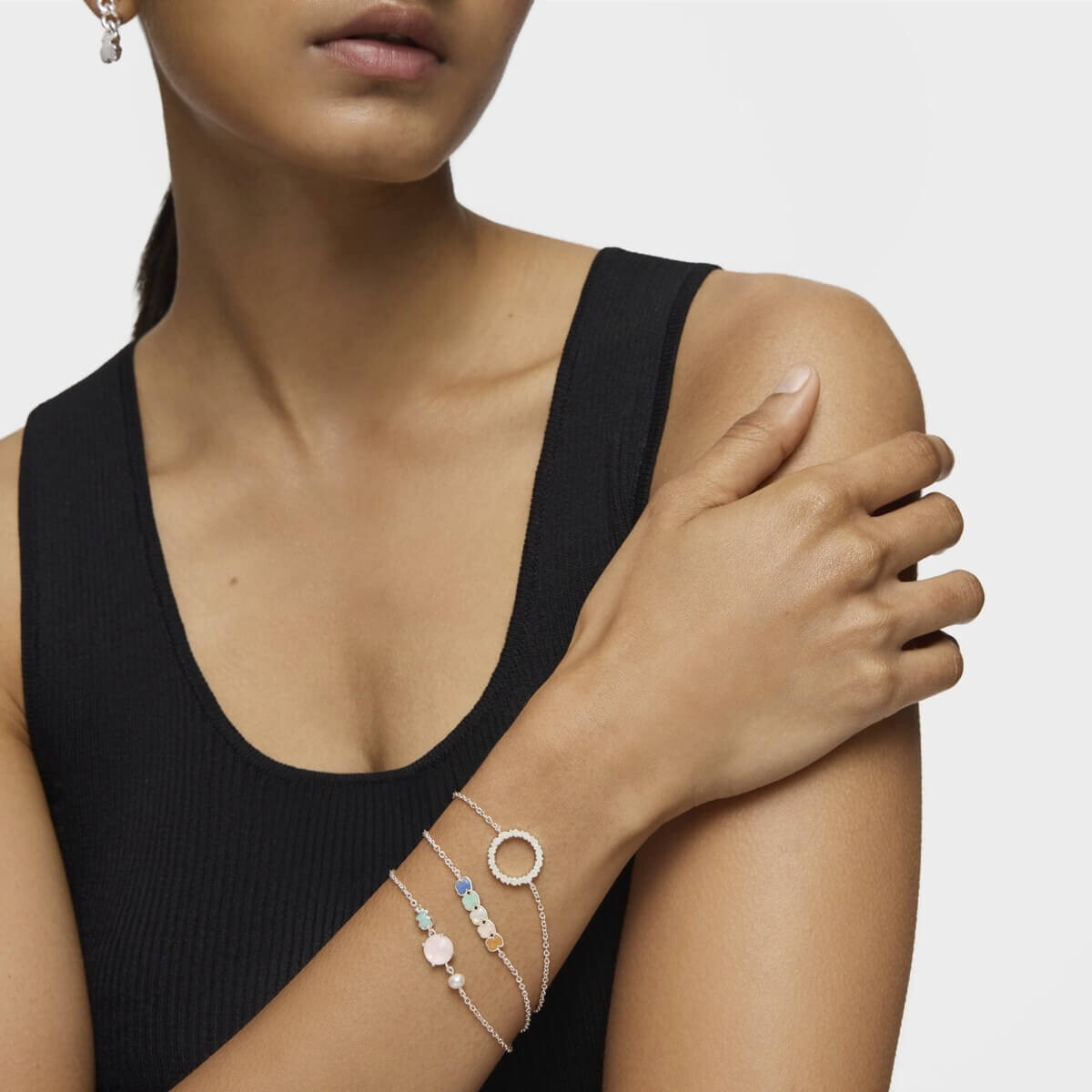 Серебро, драгоценные камни и нежное сочетание цветов для ваших самых нежных образов. Браслет TOUS Color Power из стерлингового серебра с розовым кварцем, амазонитом и жемчугом.