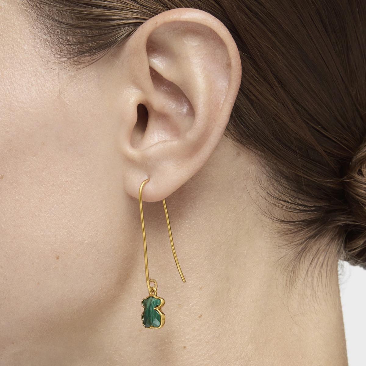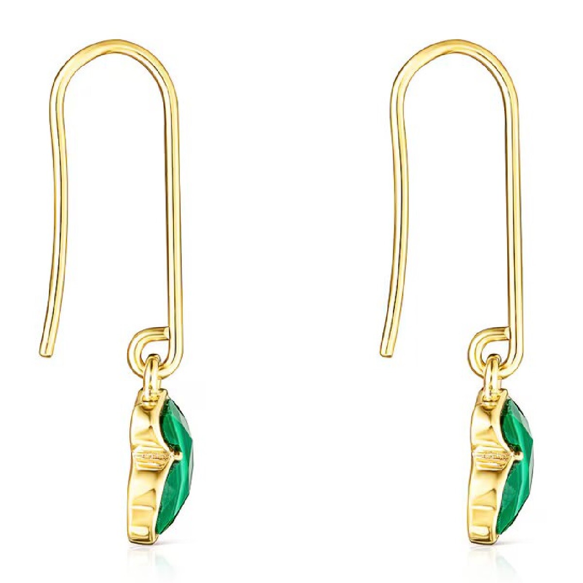Серьги TOUS Icon Color из серебристого вермея и малахита с застежкой-крючком. Они выполнены из стерлингового серебра, которое покрыто 18-каратным золотом толщиной от 3 до 5 микрон, между ними нет другого металла.