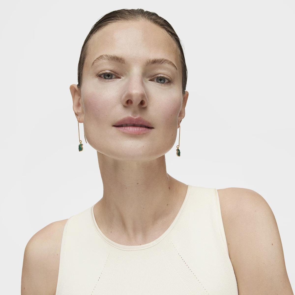 Культовый медведь бренда занимает центральное место в демонстрации драгоценностей из коллекции Icon Color. Сделайте длинные серьги из серебра vermeil и малахита повседневными и всегда носите их с собой.