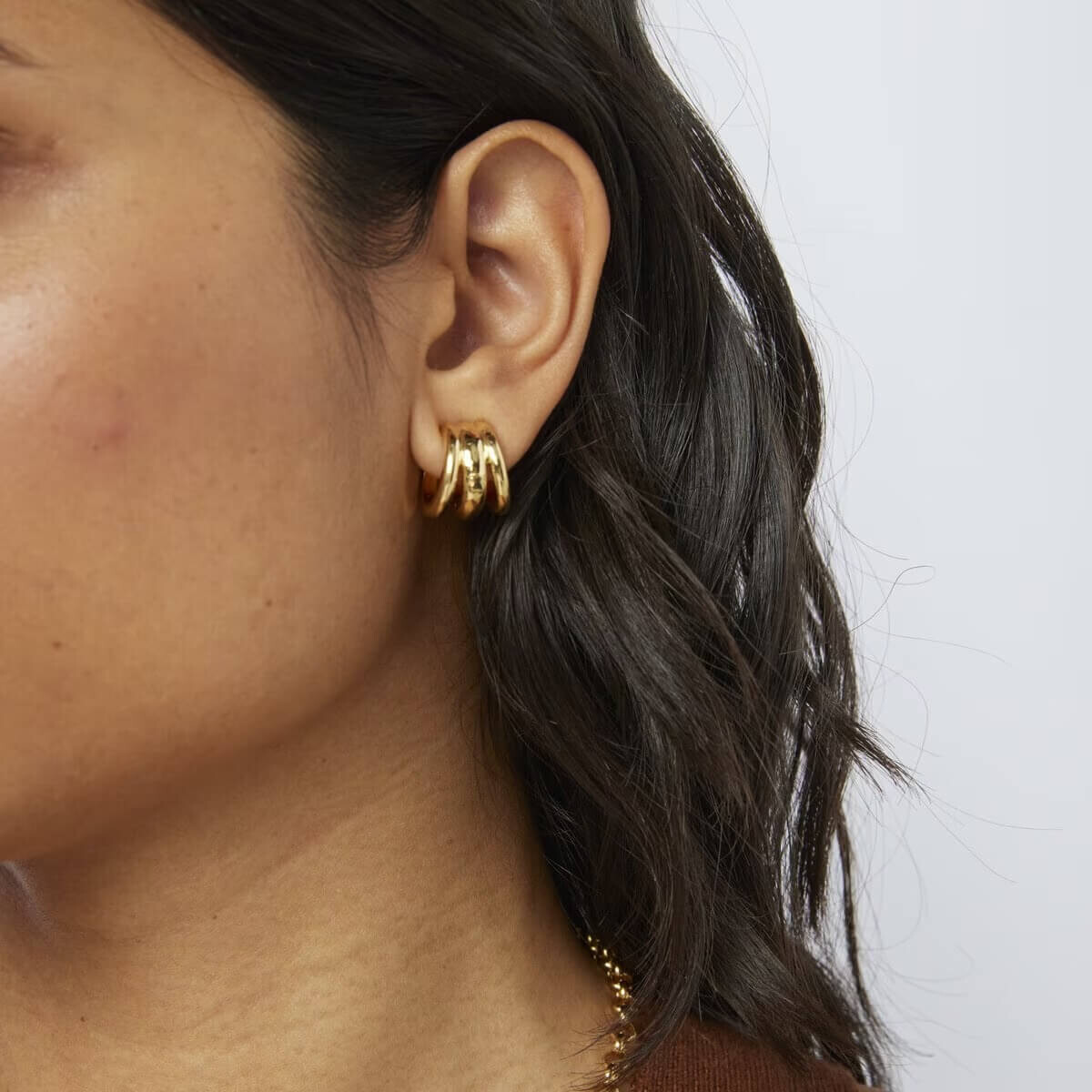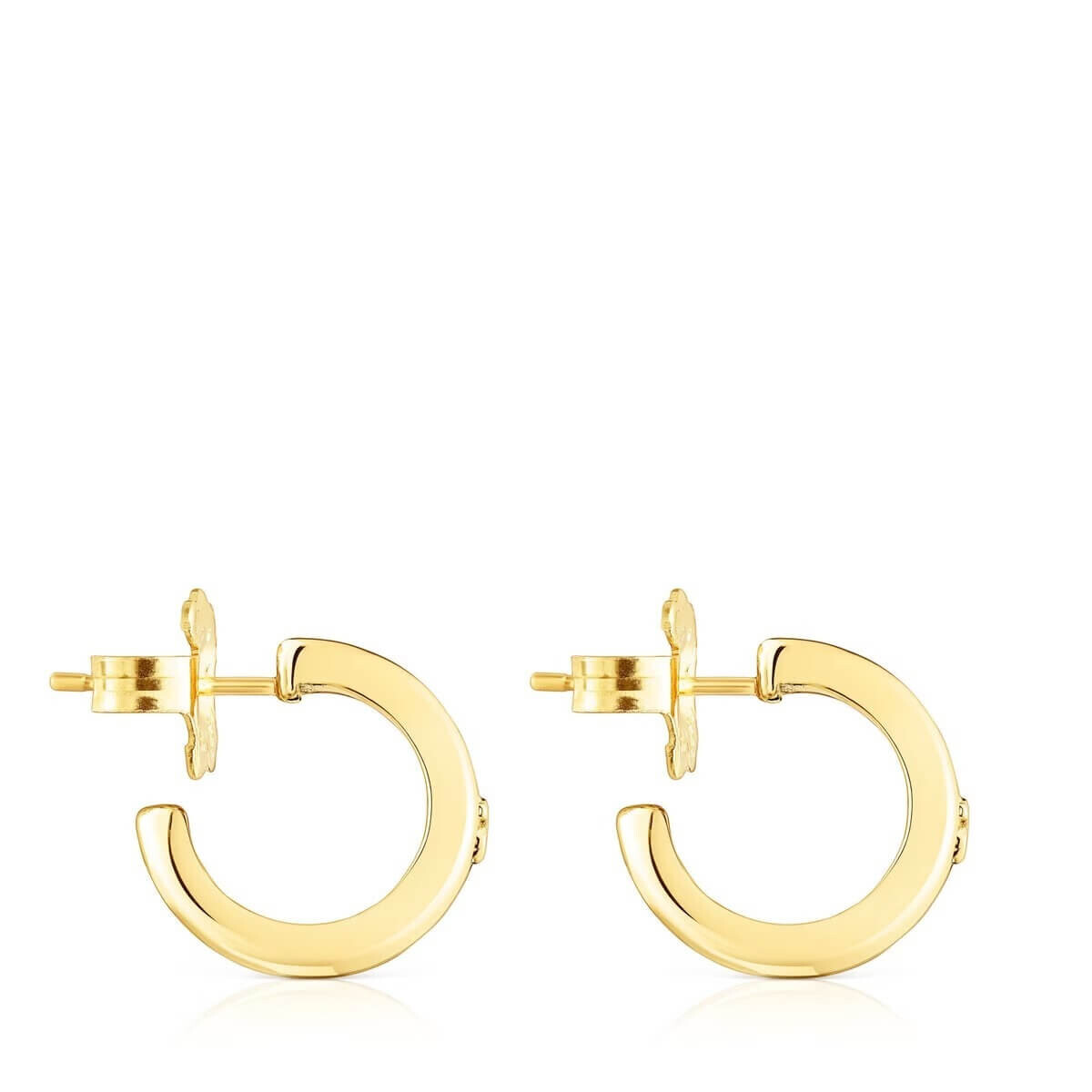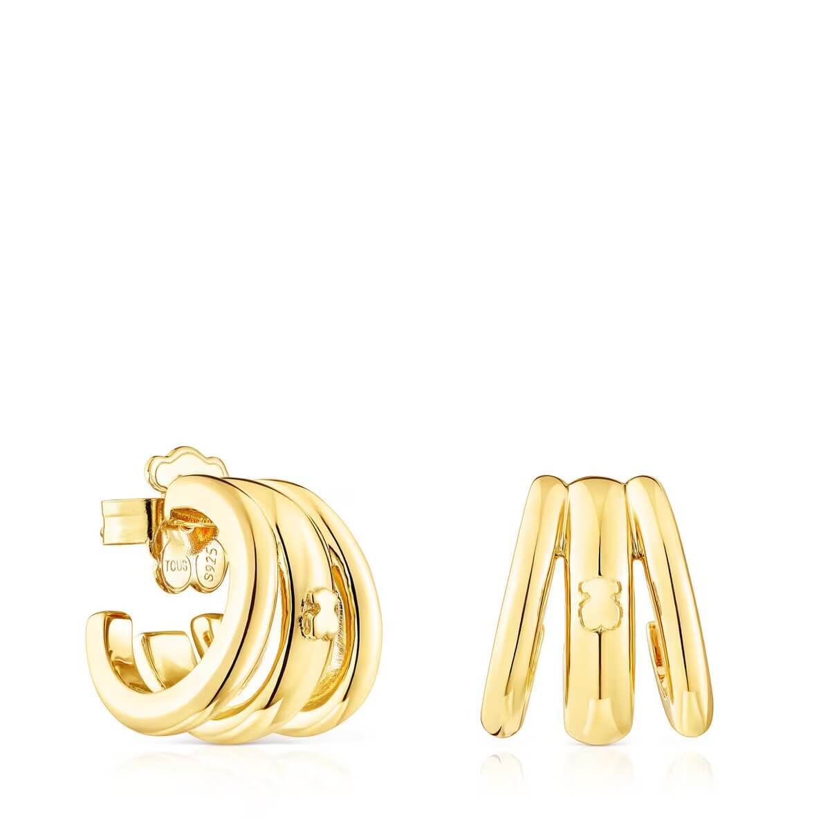 Серьги TOUS Fellow с тройным обручем из позолоченного серебра и медвежонком. Размер: Ø 11 мм.