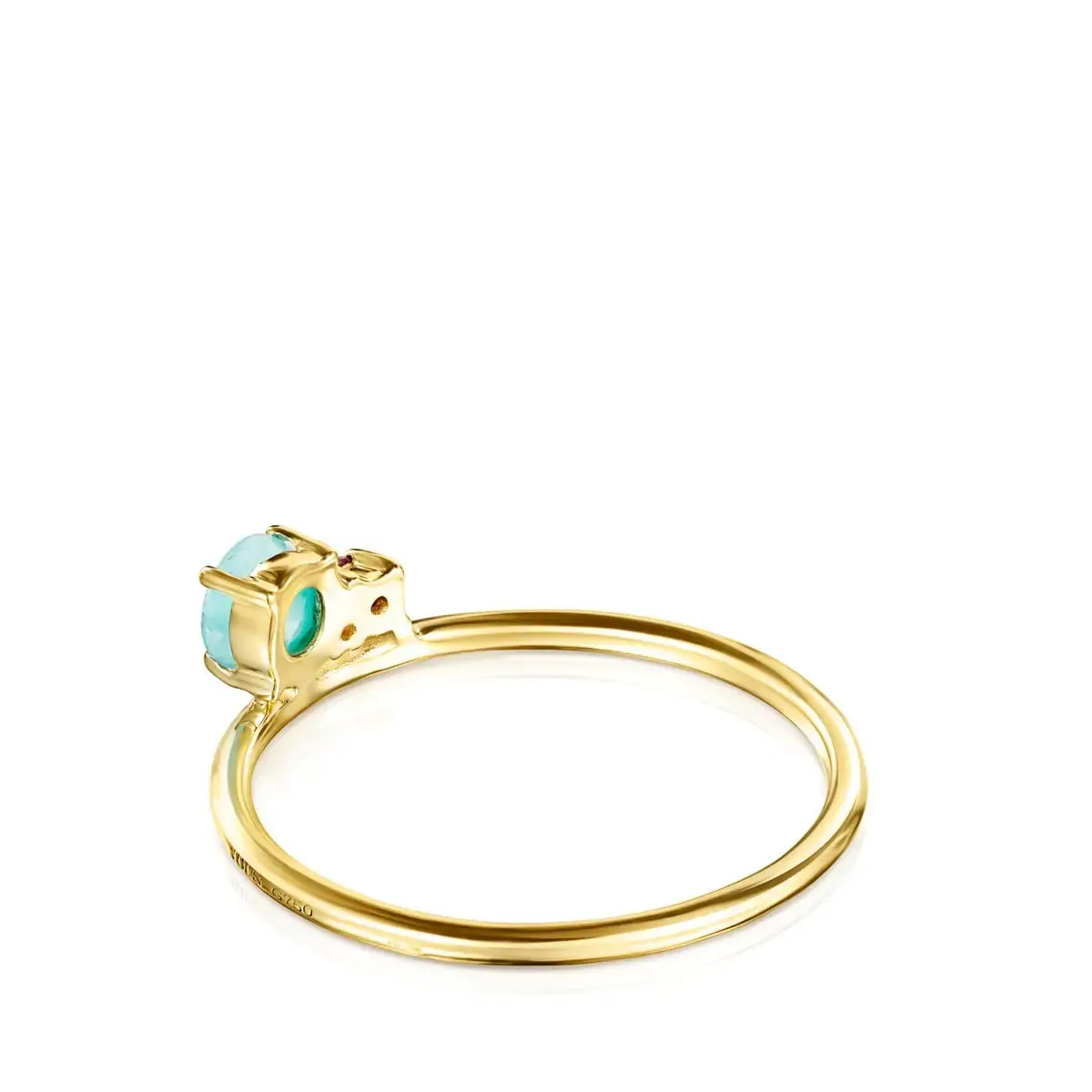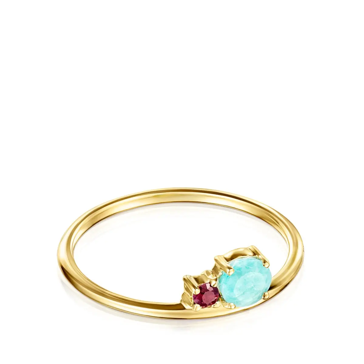 Кольцо Tous Ivette Mini из желтого золота 18 карат с амазонитом и рубином.