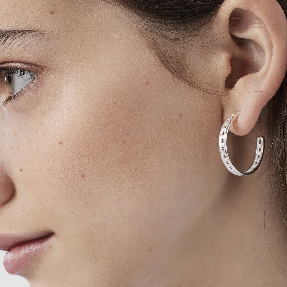 Серьги-кольца с рядами медведей TOUS из стерлингового серебра размером ~ 25 мм с перфорированными силуэтами медведей по всему кольцу.