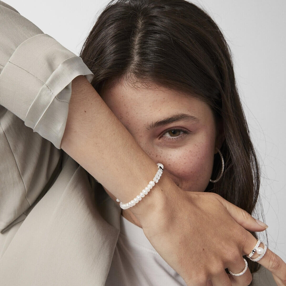 Эластичный браслет Straight из стерлингового серебра с жемчугом и медведями подойдет к любому образу. Если вы ищете простой дизайн, не теряя при этом гламура, то он должен быть вашим! Эластичный браслет TOUS Straight с культивированным пресноводным жемчугом Ø5 мм и пятью медвежатами 5,5 мм. Техника изготовления: литье.