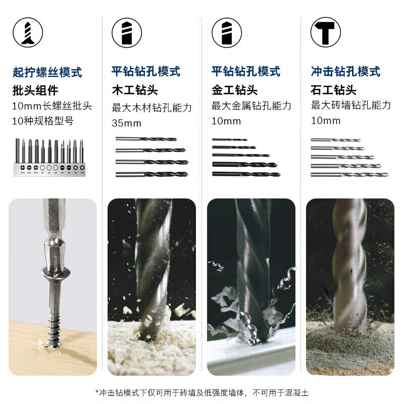 Диапазон сверления: Сверление стальной пластины, Сверление плитки, Сверление по дереву