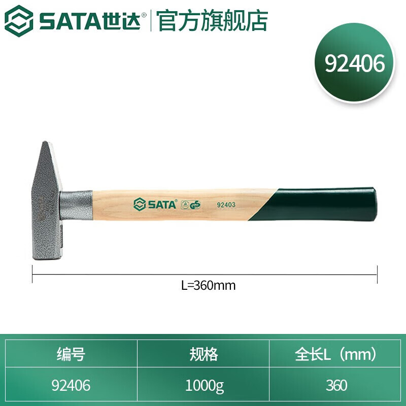 SATA 92406 Молоток слесарный с деревянной ручкой, 1000 г