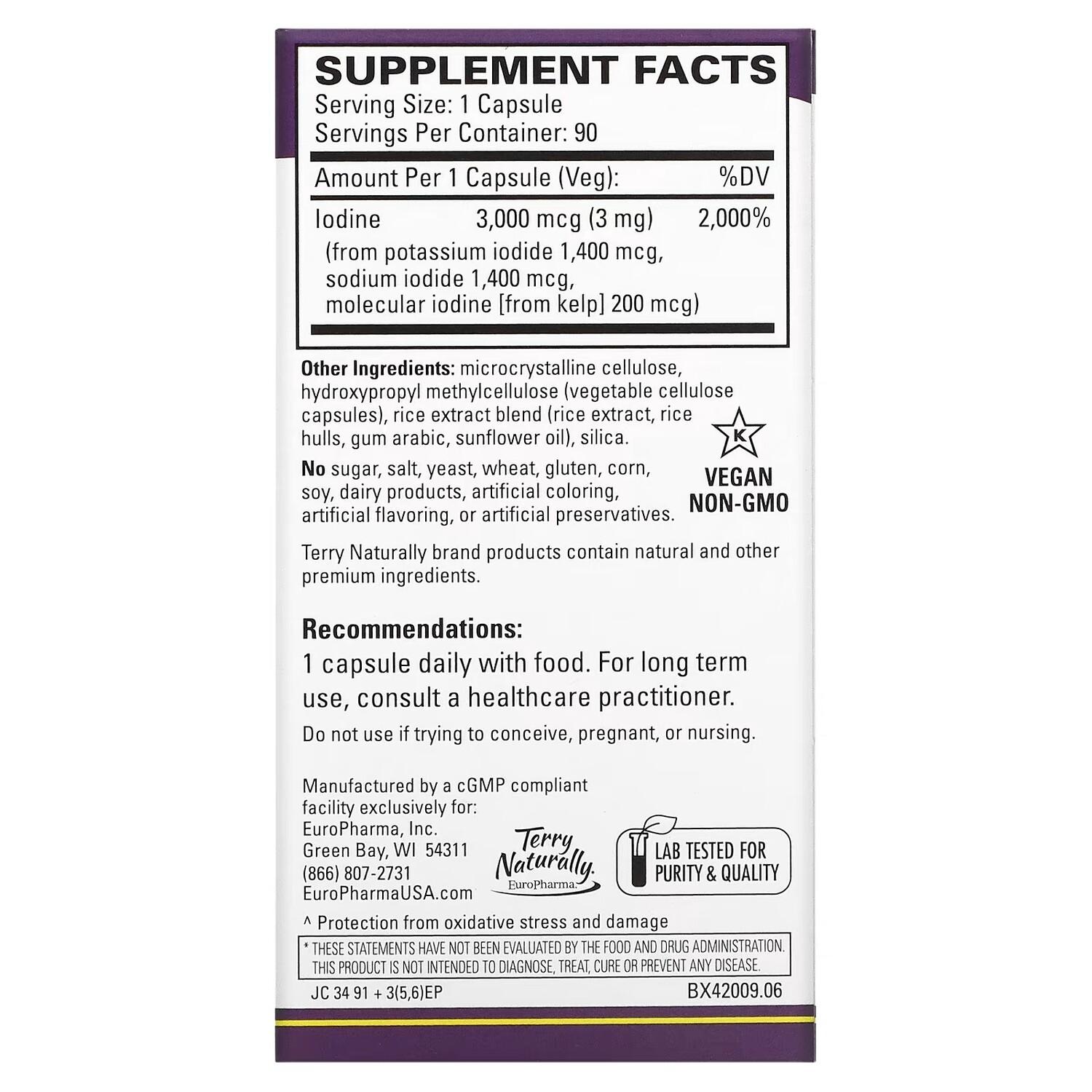 Добавка Terry Naturally Tri-Iodine, 90 капсул