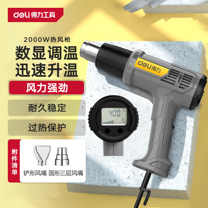 Deli фен, цифровой дисплей, регулировка температуры, вентилятор горячего воздуха, мощный ручной фен, сушильный пистолет, промышленный пистолет для сушки пленки, 2000 Вт 2 879₽