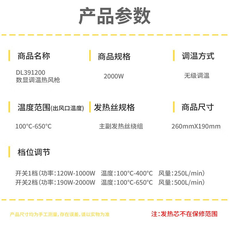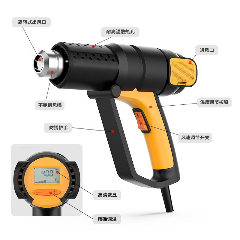 Пистолет горячего воздуха промышленного класса Deli, цифровой дисплей, регулировка температуры, электрический фен, сушильный пистолет для пластика, бесступенчатая регулировка температуры 2000WDL391200