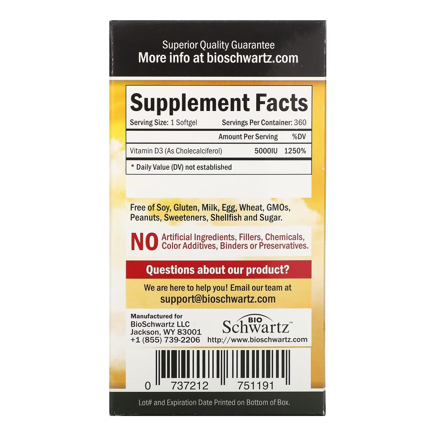 Витамин D3 Усиленного Действия BioSchwartz, 360 капсул
