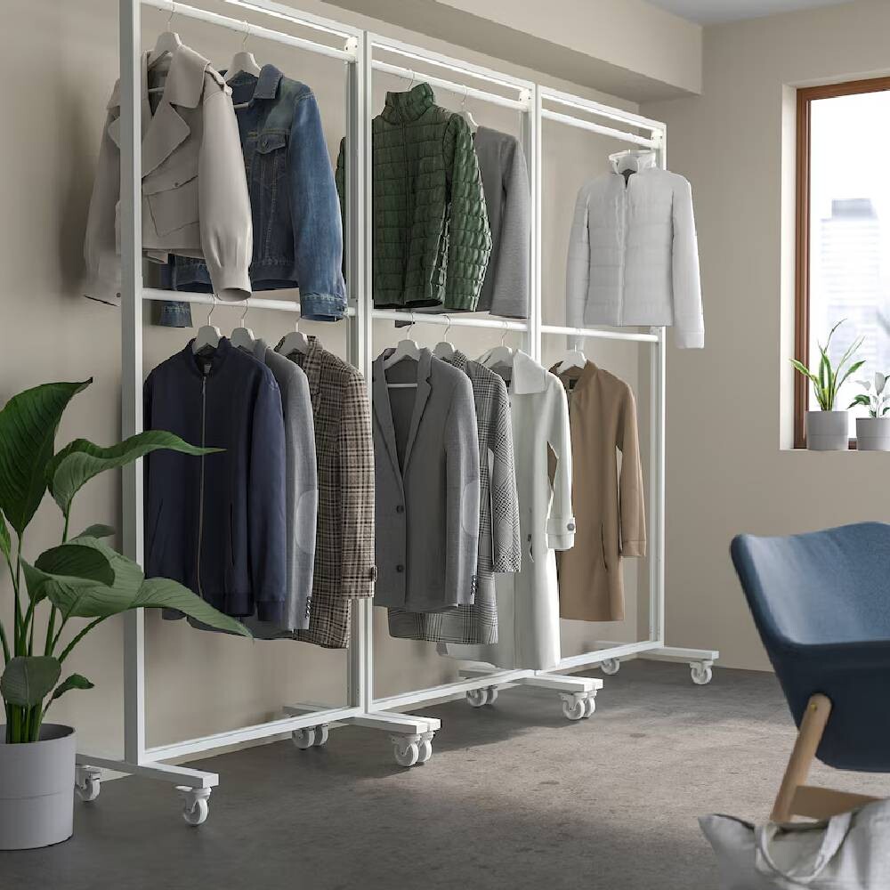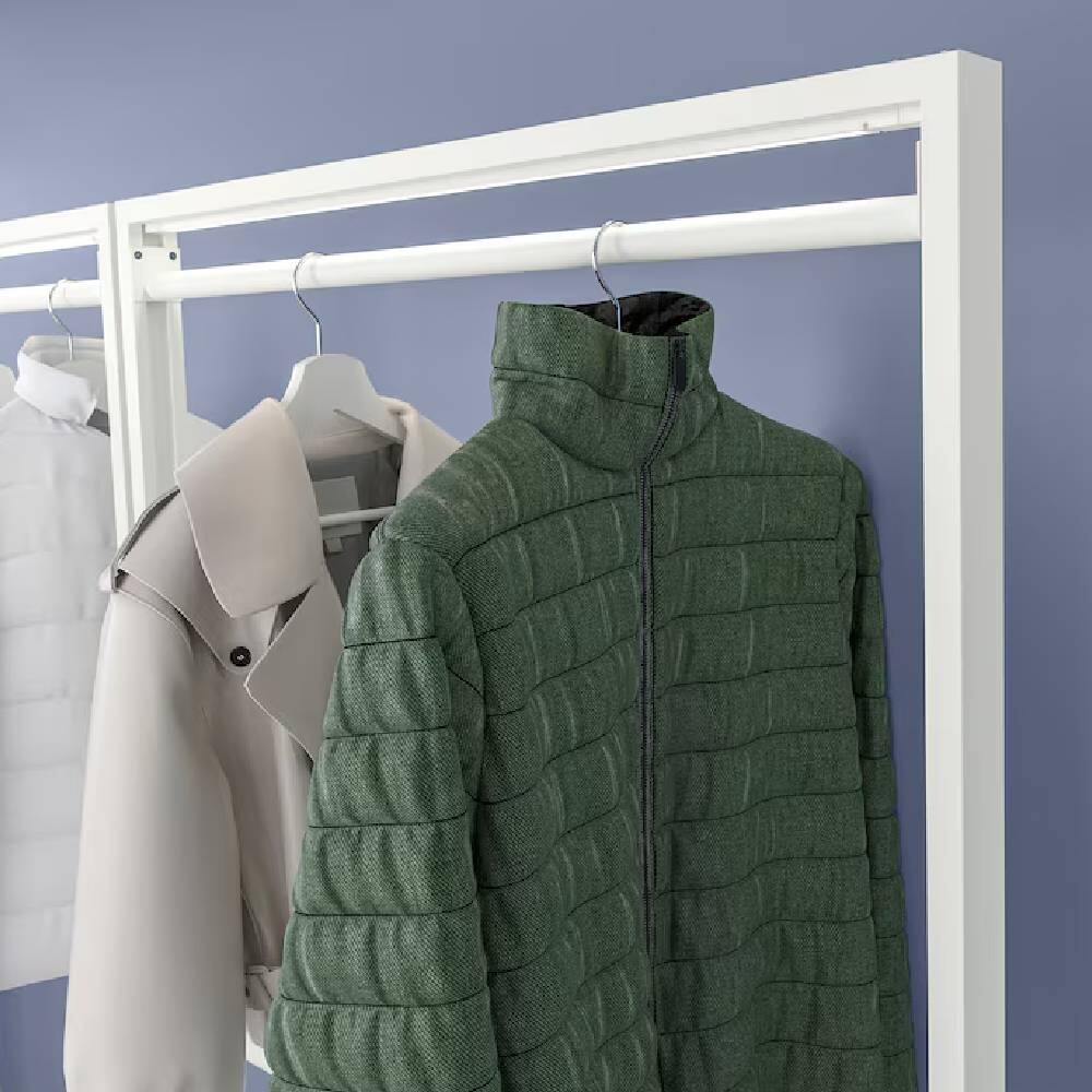 Объединив эту штангу для одежды с рамами MITTZON на колесиках, вы получите универсальное решение для подвешивания верхней одежды в прихожей или коридоре. Прикрепите одну или две рейки к каждой раме.
