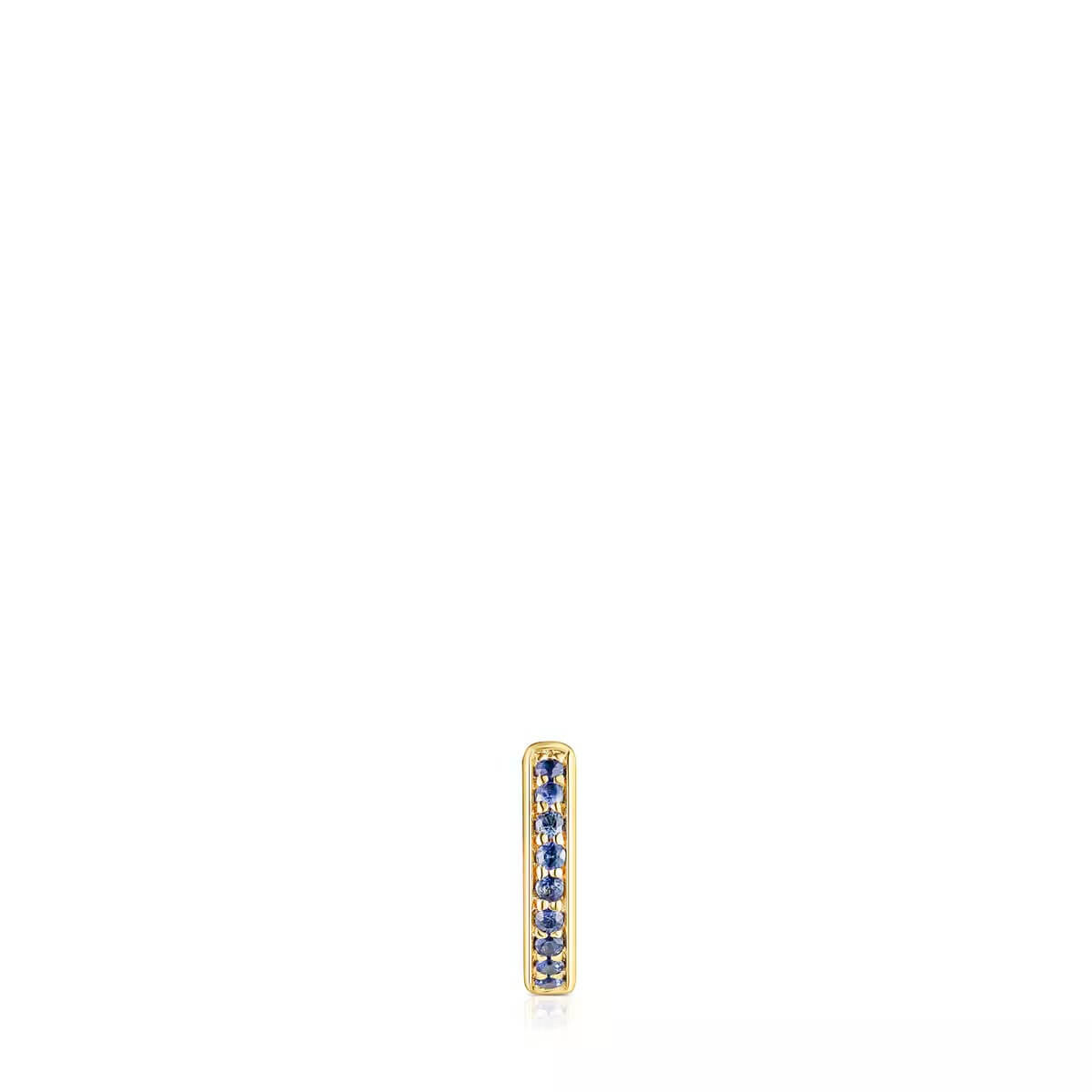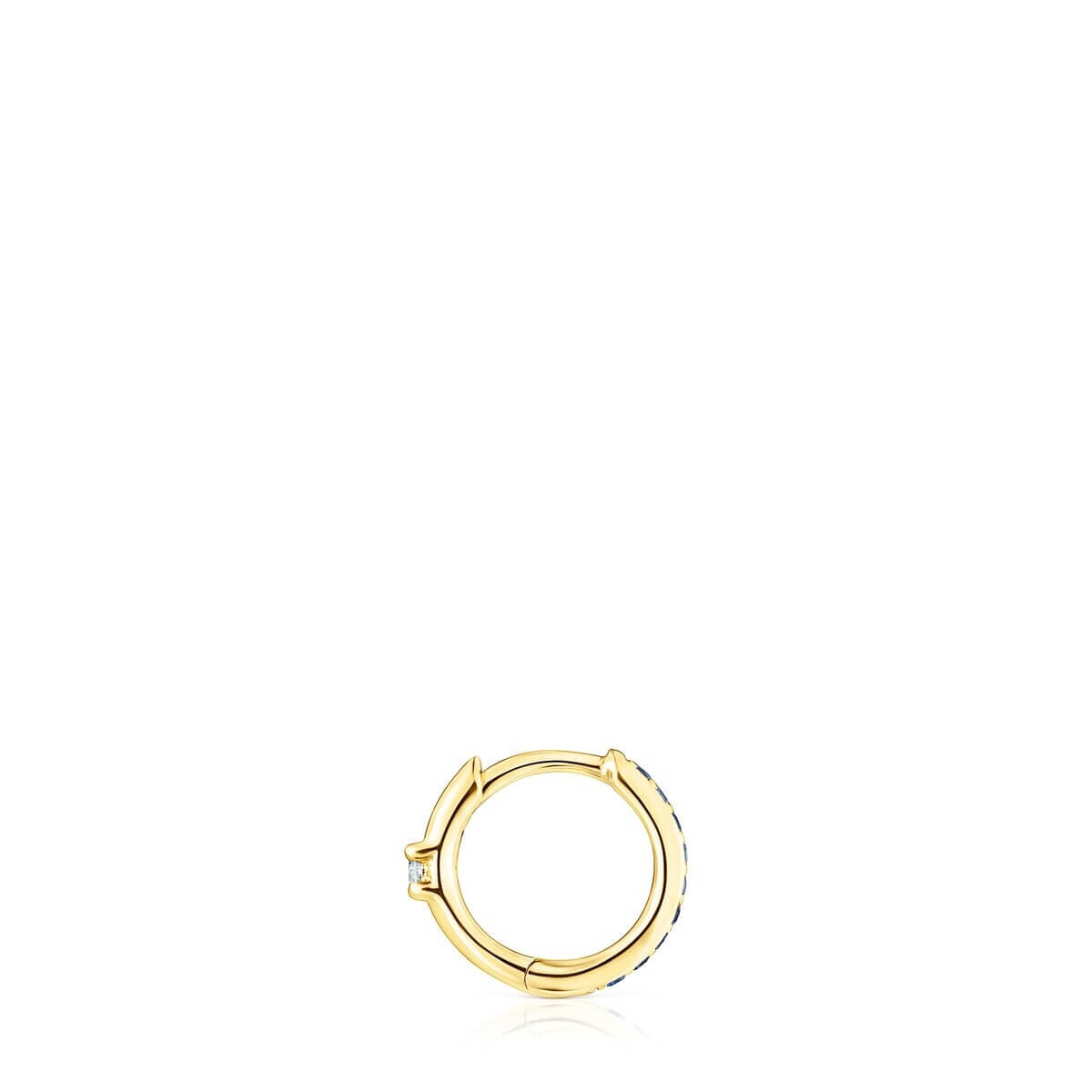 Серьги-кольца TOUS Basics из желтого золота 18 карат с голубыми сапфирами и бриллиантом бриллиантовой огранки 0,03 карата H/SI. Размер Ø8 мм. Застежка-обруч.