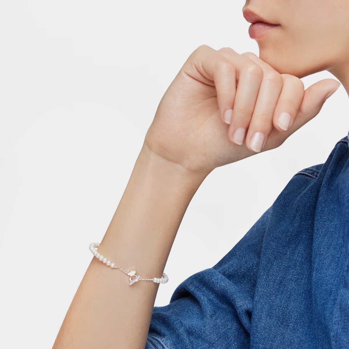 Браслет из стерлингового серебра с мотивом серебряного медведя и культивированным жемчугом I-Bear для вашего шикарного образа.