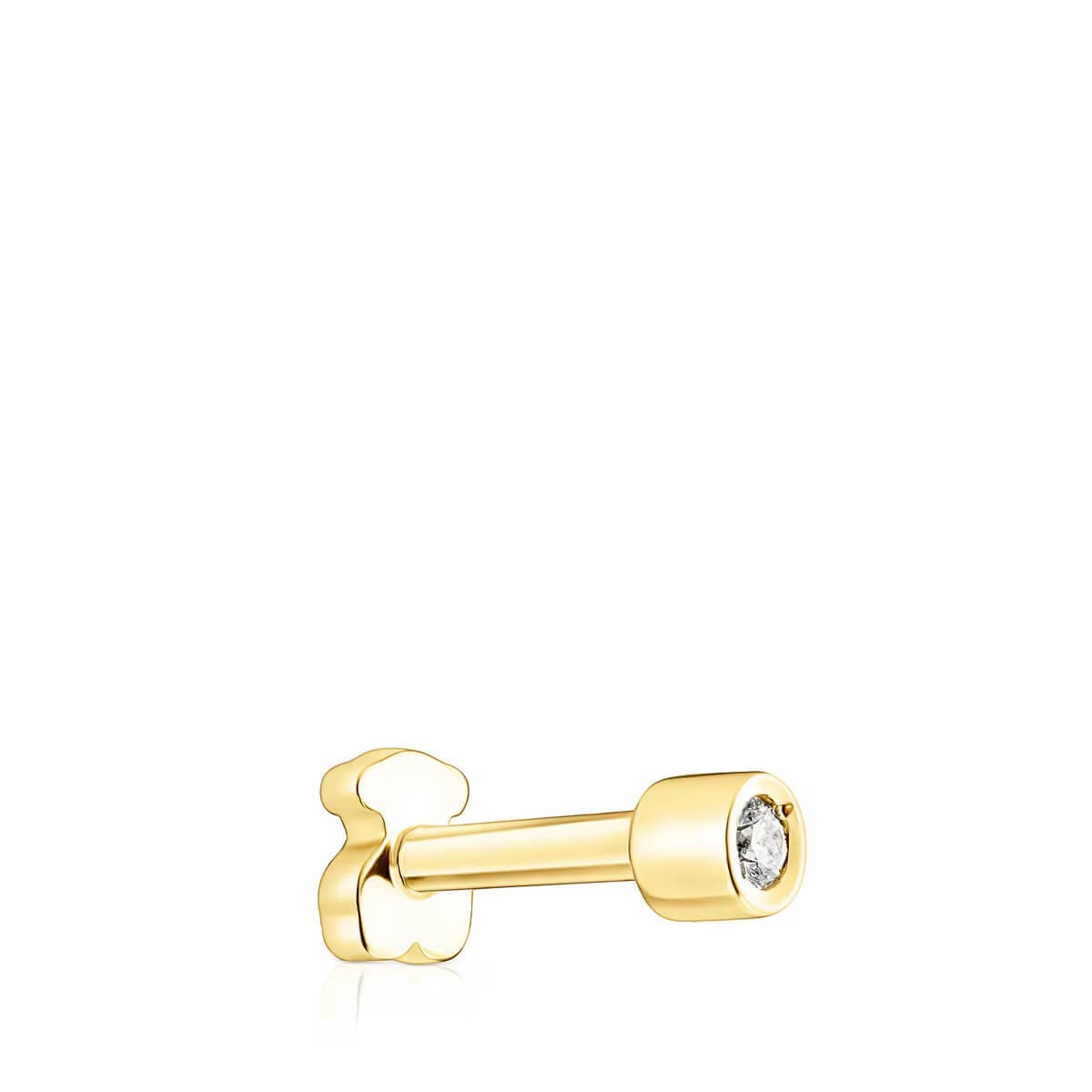 Серьга-пирсинг TOUS Basics из желтого золота 18 карат, с бриллиантом бриллиантовой огранки H/SI 0,014 карата. Винт в форме медведя сзади.