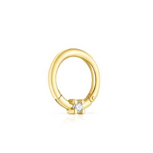 Серьга-кольцо TOUS Basics из желтого золота 18 карат с бриллиантом бриллиантовой огранки H/SI. Размер серьги Ø7 мм.