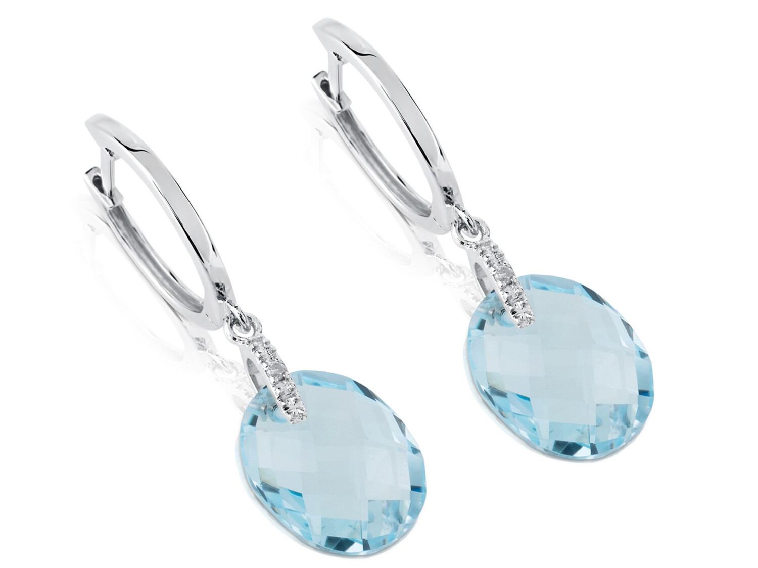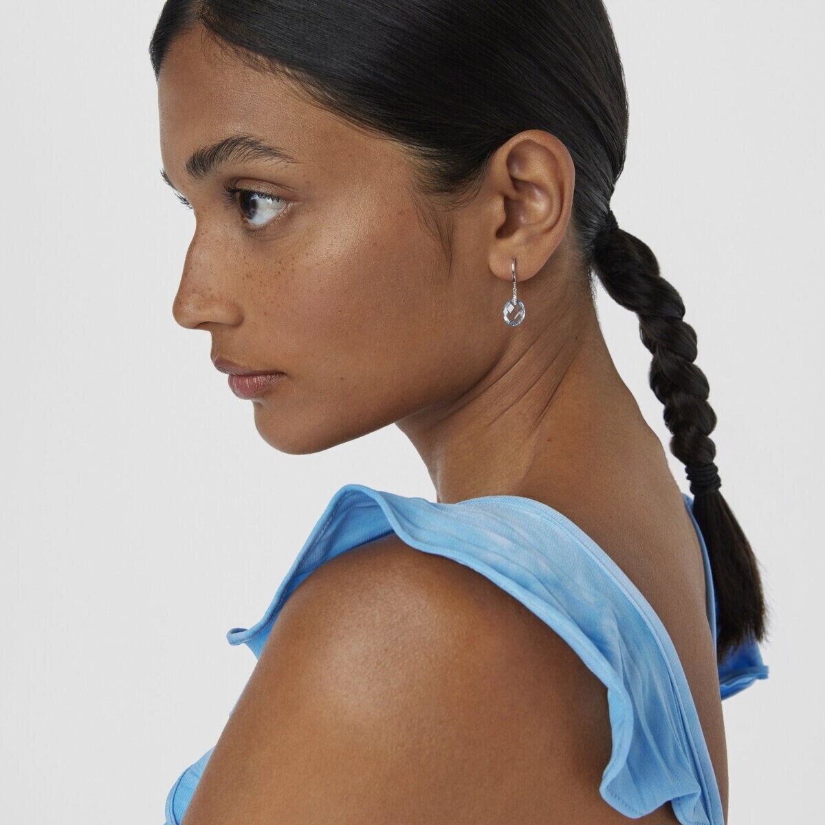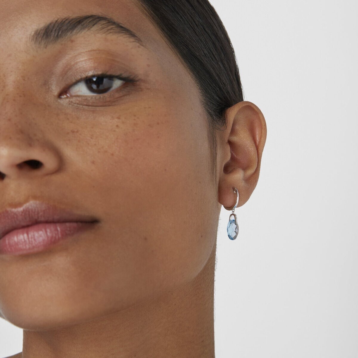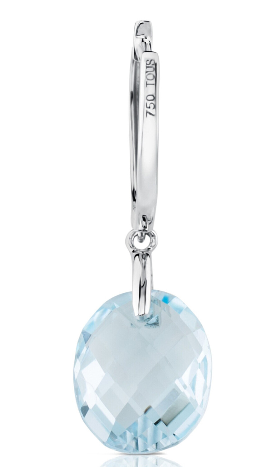 Серьги-кольца TOUS Color Kings из 18-каратного белого золота с бриллиантами и голубым топазом.