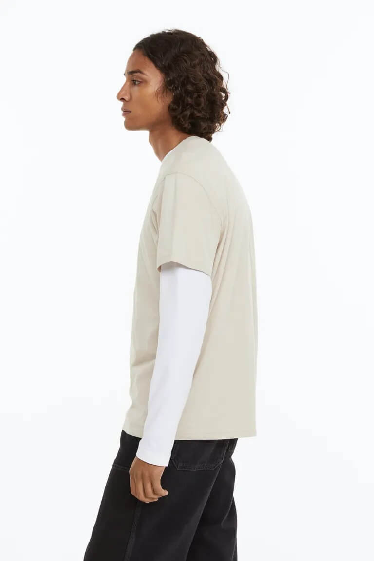 Футболка прямого кроя из мягкого хлопкового трикотажа. Круглый вырез в рубчик и прямой низ.