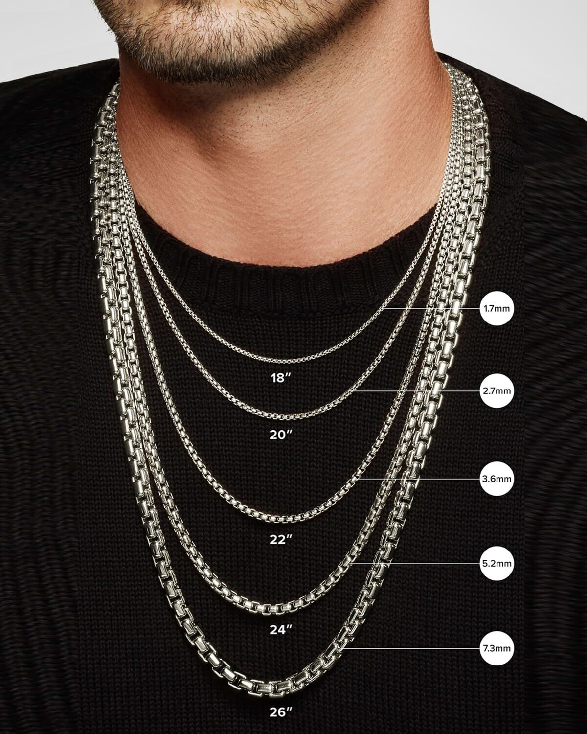 Мужское колье-цепочка Box в серебре David Yurman, цвет Silver
