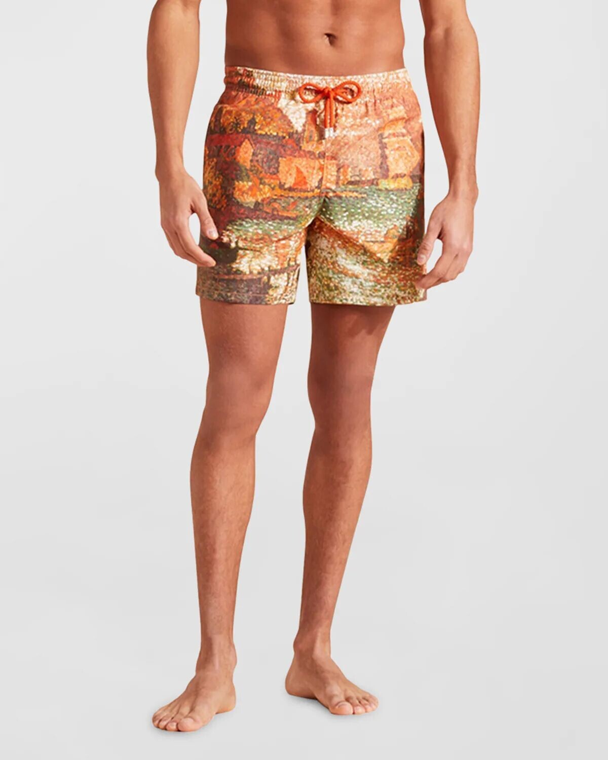 Мужские плавки в стиле импрессионизма Vilebrequin, цвет Brick