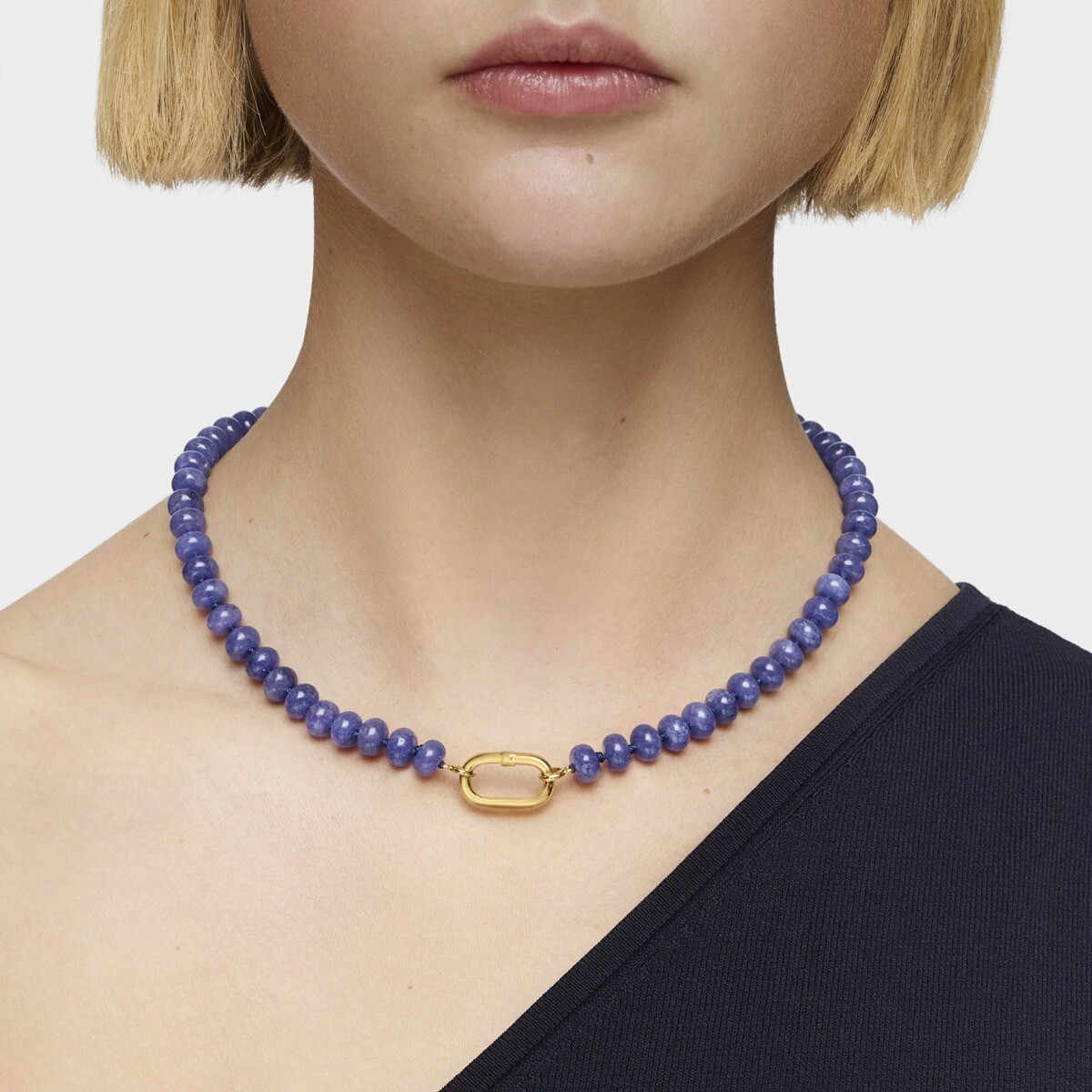Чокер TOUS Hold Oval с покрытием из 18-каратного золота поверх серебра и обработанного голубого кварцита.