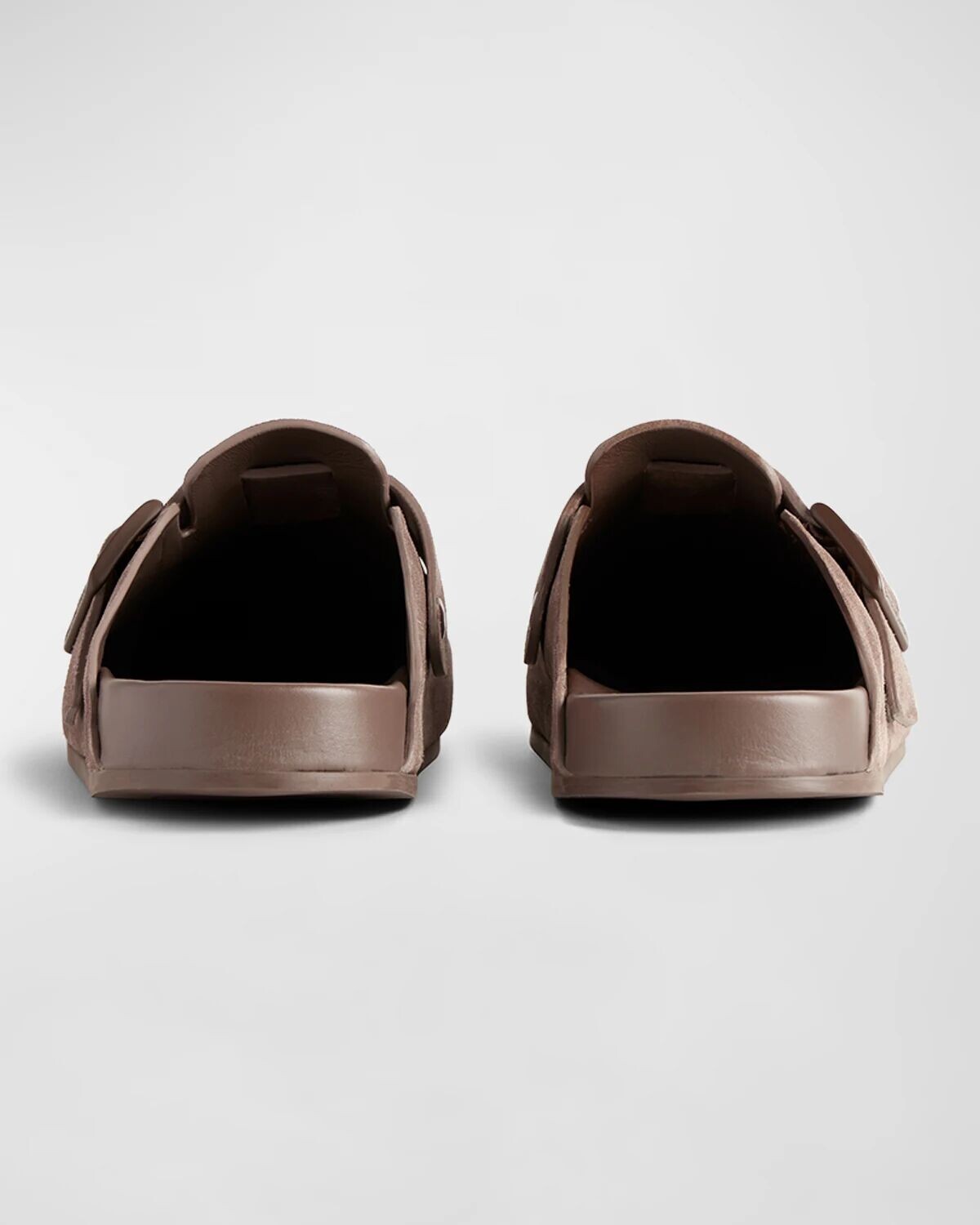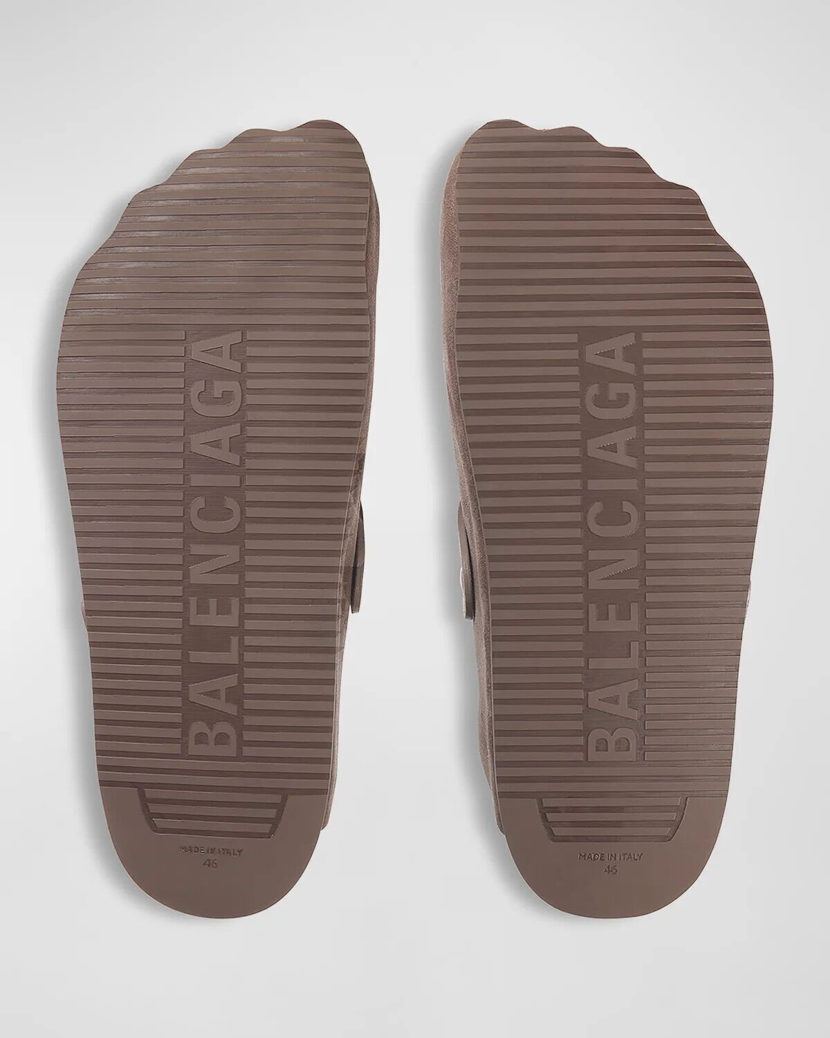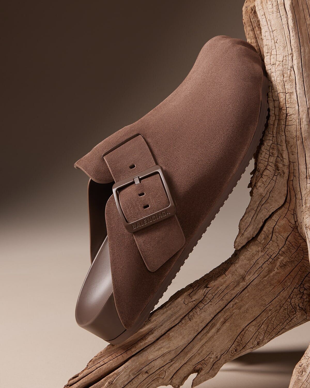 • Замшевые мюли Balenciaga "Sunday" с ремешком с пряжкой с выгравированным логотипом.