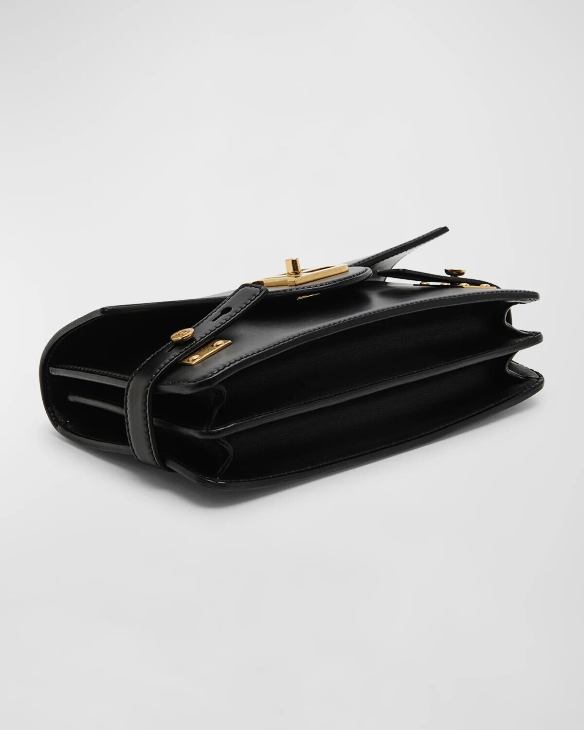 • Откидной клапан и поворотный замок с монограммой; застежки на боковые кнопки.