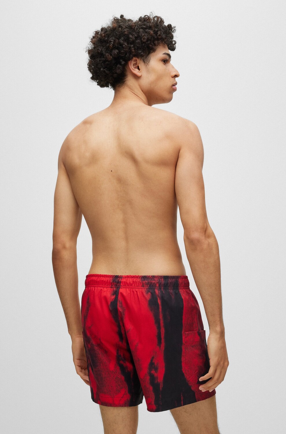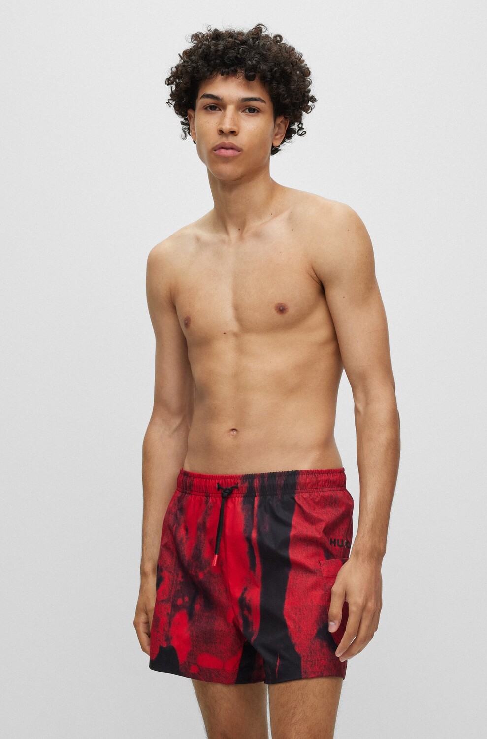 Купальные шорты на полной подкладке от HUGO, выполненные из быстросохнущей ткани рипстоп, с графическим принтом и логотипом на левой штанине.