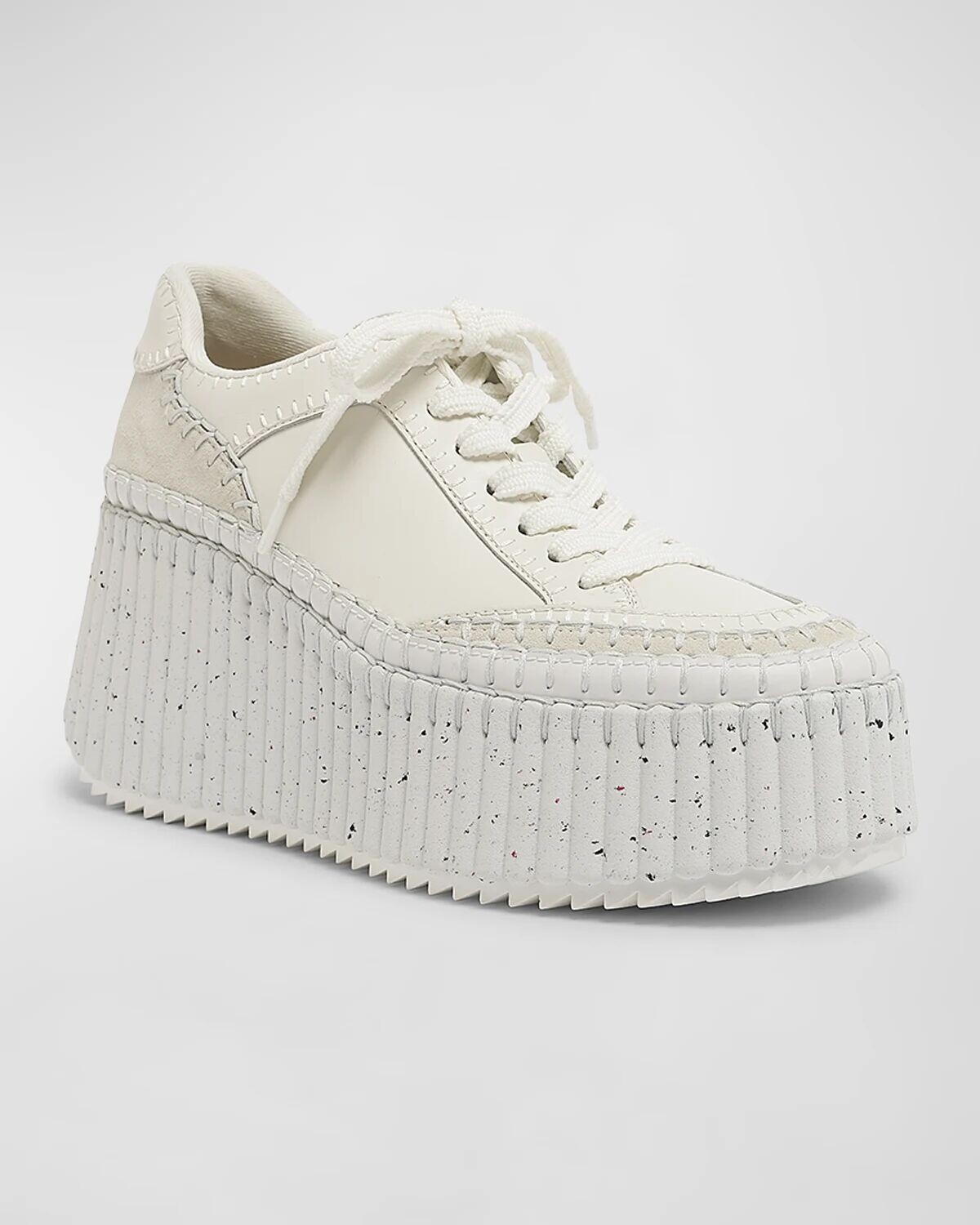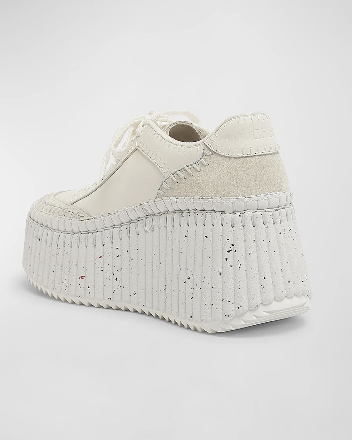 Кроссовки из смешанной кожи в крапинку на платформе Chloé, цвет White