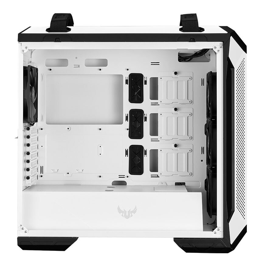 Компьютерный корпус ASUS TUF Gaming GT501 в отличительном дизайне: металлическая передняя панель с отделкой в стиле TUF Gaming и прозрачная боковая панель из закаленного стекла толщиной 4 мм, открывающая вид на комплектующие. Форм-фактор материнской платы до EATX, оптимизированная система охлаждения с возможностью установки нескольких кулеров, а также радиаторов для водяного охлаждения.