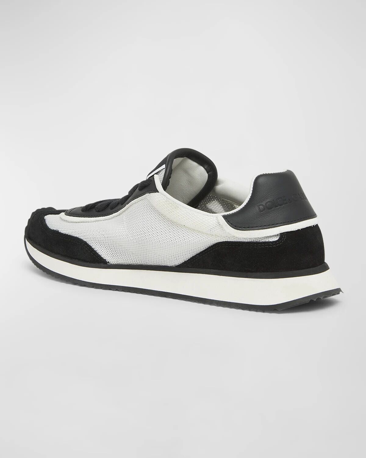 • Кроссовки для бега Dolce&Gabbana из сетчатой ​​ткани, телячьей замши и кожи.
