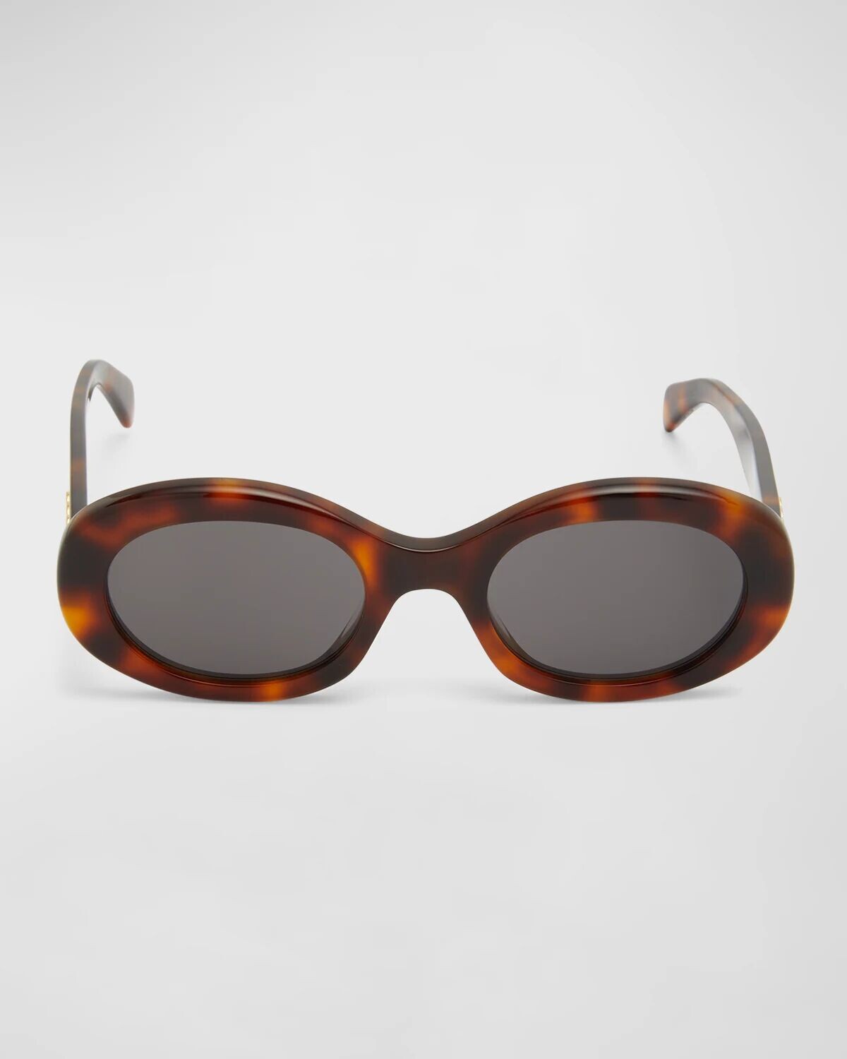 Овальные солнцезащитные очки Triomphe с логотипом из ацетата Celine, цвет Havana/Smoke