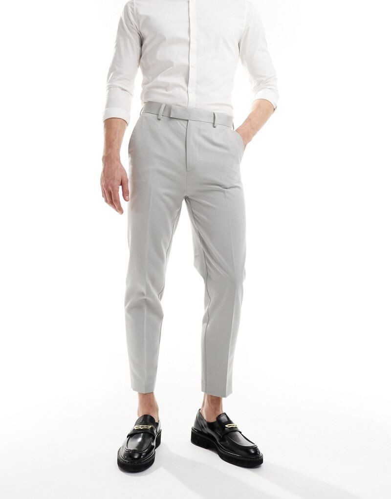 Светло-серые элегантные зауженные брюки ASOS DESIGN