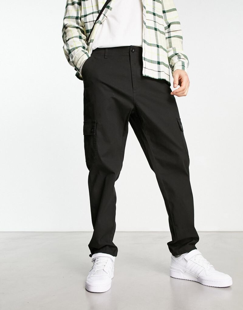 Черные зауженные брюки карго с застежками ASOS DESIGN