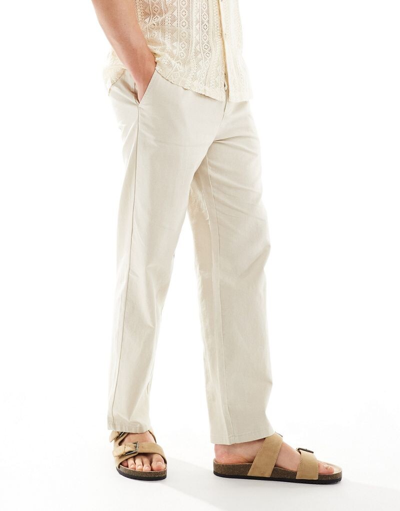 ONLY - Бежевые широкие брюки из смесового льна 7 438₽