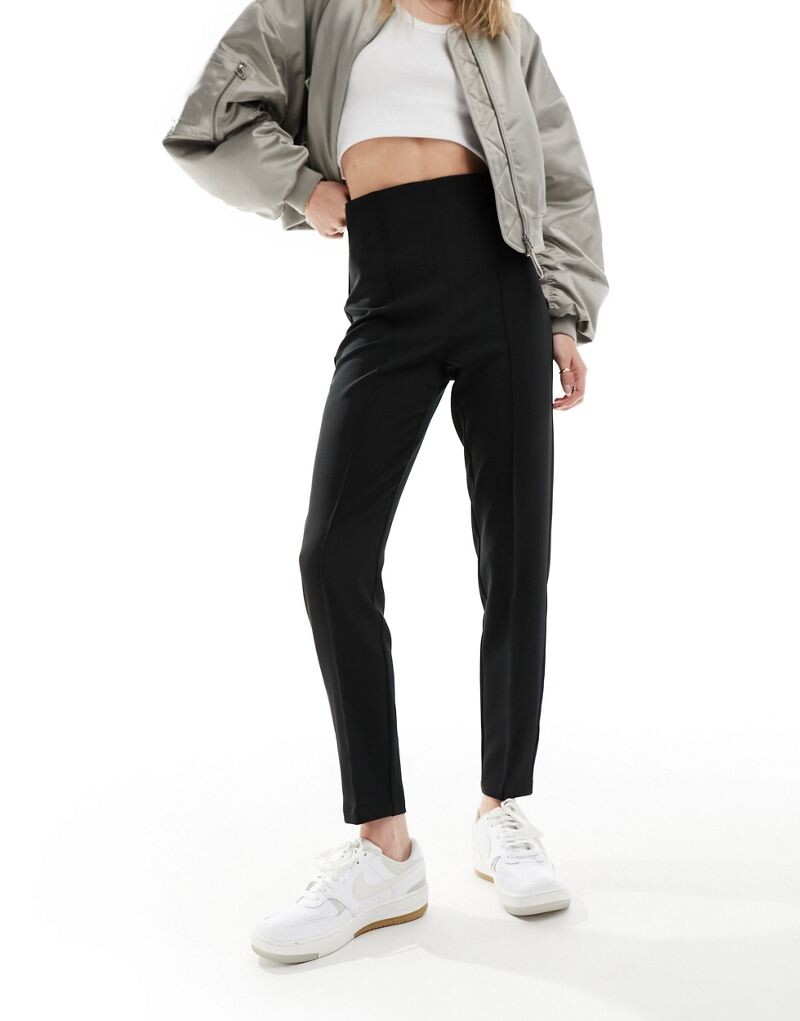 Черные прошитые брюки с высокой талией ASOS DESIGN Tall
