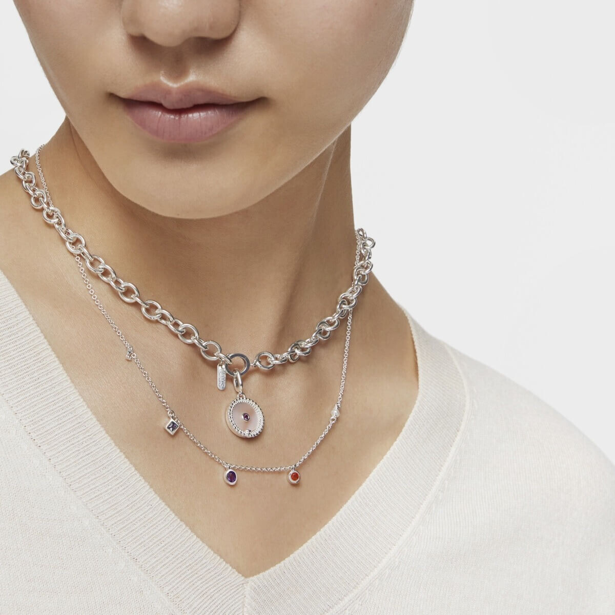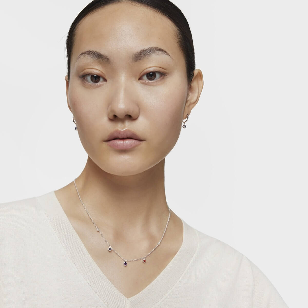 Короткое ожерелье TOUS Basic Colors из стерлингового серебра с драгоценными камнями и культивированным жемчугом. Драгоценные камни: иолит огранки «принцесса» 2,5 мм, граненый круглый сердолик 3 мм, граненый овальный аметист 3,8 x 2,8 мм и культивированный пресноводный жемчуг 3–3,5 мм. Длина ожерелья: 40–45 см. Застежка-кольцо.