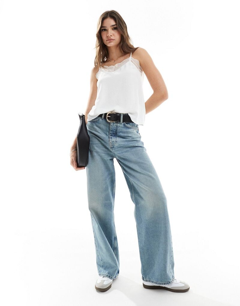 Белый топ на бретелях Pieces с кружевной отделкой 3 917₽