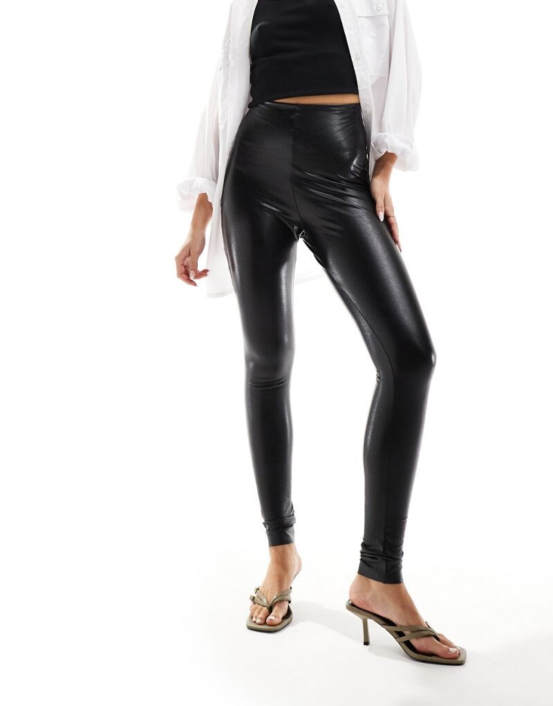 Черные леггинсы из искусственной кожи с гладкой талией Commando
