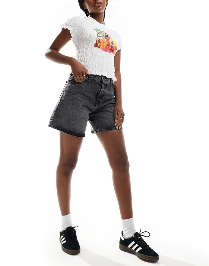 Levi’s — свободные джинсовые шорты стираного черного цвета с высокой талией