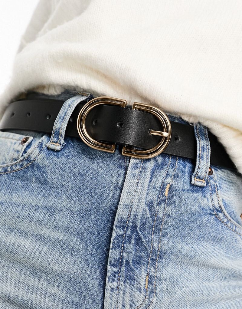 Ремень для джинсов ASOS DESIGN черного цвета с золотой пряжкой - ЧЕРНЫЙ