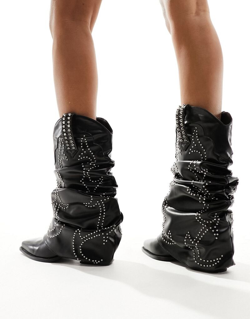Черные откидные ботинки в стиле вестерн Azalea Wang Rune с заклепками