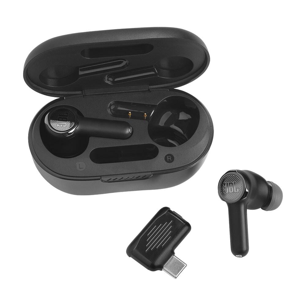 Концепция работы базируется на двух типах сигналов. Вы имеете возможность подключиться к частоте 2.4 ГГц (адаптер USB-C для такого формата взаимодействия поставляется в комплекте). Так обеспечивается соединение с низкой задержкой на совместимых девайсах. При этом техника прекрасно работает со всеми платформами, использующими Bluetooth: смартфоны, планшеты, лэптопы. Легко переключайтесь между стандартами связи при помощи технологии JBL Dual Source.