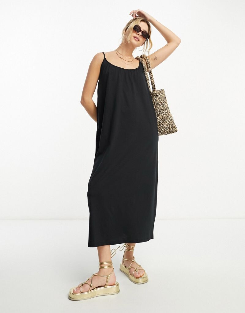 Vero Moda – длинное черное платье на тонких бретелях 4 068₽