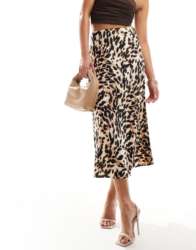 YAS - Атласная юбка миди с леопардовым принтом Y.A.S